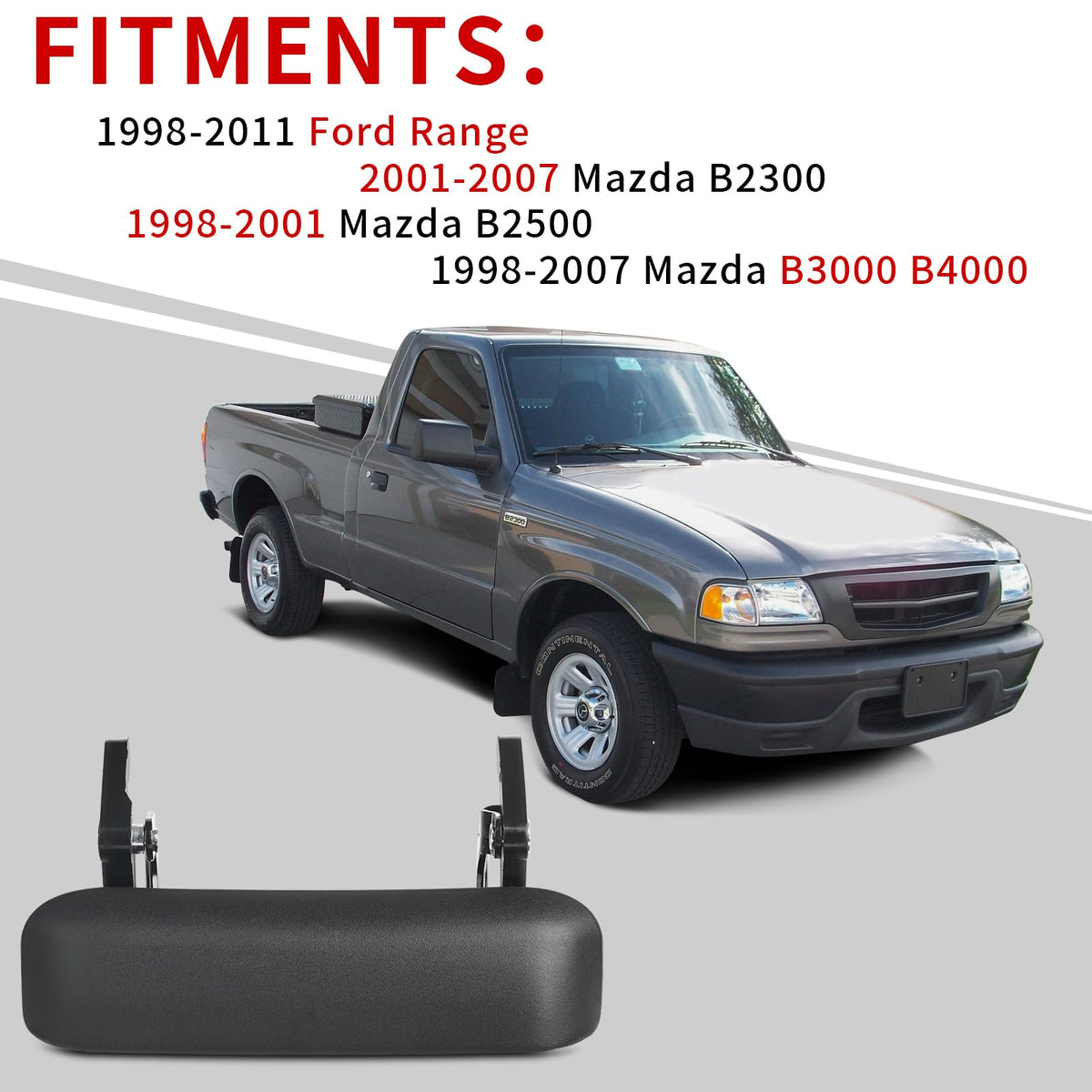 ?Fitment?: 1998 99 00 01 02 03 04 05 06 07 08 09 10 2011 Ford Ranger Tailgate Door Handle 01-07 Mazda B2300 Tailgate Door Handle 98-01 Mazda B2500 Tailgate Door Handle 98-07 Mazda B3000 B4000 Tailgate Door Handle