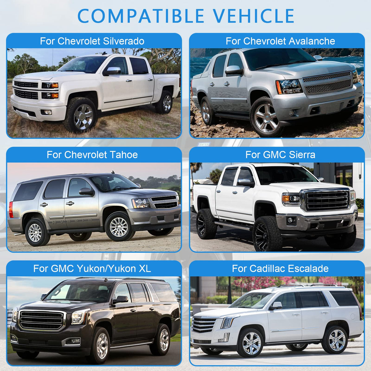 A door handle is used to open and close car doors. It is found on both the exterior and interior sides of automobile doors, although they are used differently on each panel. The one on the outside is pulled to open the car door, while the inside door handle is used to release the door latch before you can push the door to let yourself out. Fitment: 2007-2013 Cadillac Escalade door handle 2007-2014 Cadillac Escalade ESV door handle 2007-2013 Cadillac Escalade EXT door handle 2007-2012 Avalanche door handle 2007-2013 Silverado 1500 door handle 2008-2009 Silverado 2500 door handle 2011-2012 Silverado 2500 door handle 2014 Silverado 2500 door handle 2007 Silverado 2500 door handle 2007-2014 Silverado 2500 HD door handle 2011-2013 Silverado 3500 door handle 2007-2014 Silverado 3500 HD door handle 2014 Suburban door handle 2007-2014 Suburban 1500 door handle 2007-2013 Suburban 2500 door handle 2007-2014 Tahoe door handle 2007-2014 GMC Sierra door handle 2007-2013 GMC Sierra 1500 door handle 2007-2014 GMC Sierra 3500 HD door handle 2007-2014 GMC Yukon door handle 2007-2014 GMC Yukon XL 1500 door handle 2007-2013 GMC Yukon XL 2500 door handle Package Included: 1 x Door Handle