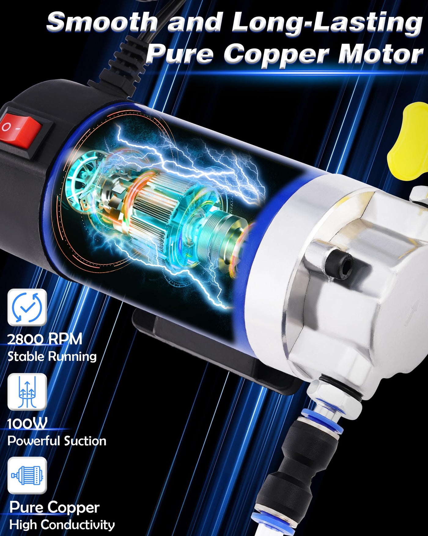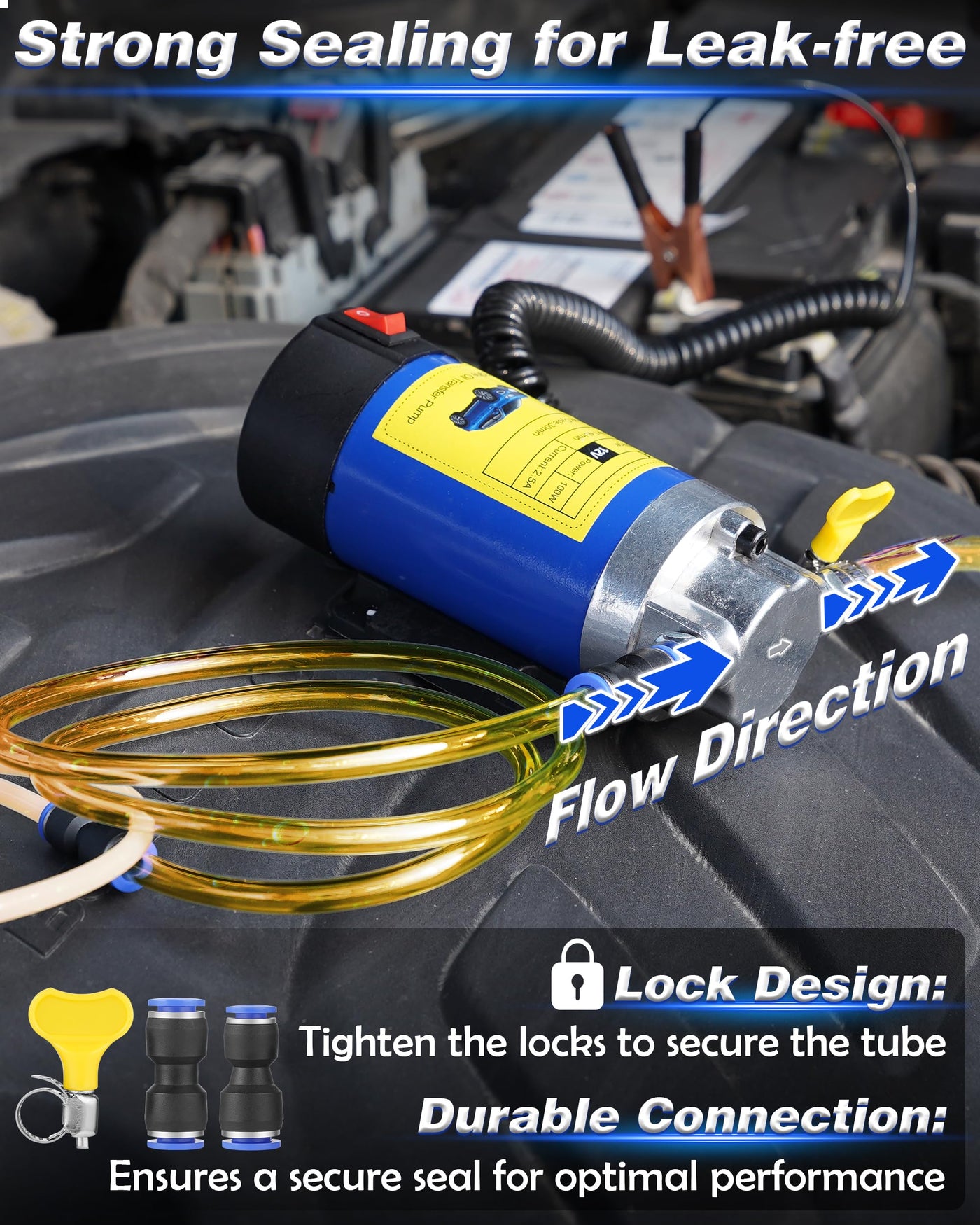 This 12V DC, 100W oil extractor operates at a flow rate of 1-4 L/min (50-194F) for up to 30 minutes, making it ideal for changing engine oil, gear oil in cars, motorcycles, pressure washers, and lawn mowers. Its clean design allows for hassle-free oil replacement without crawling under vehicles. Featuring a pure copper motor for fast suction and a leak-proof design with secure clips, this extractor ensures efficient and reliable oil changes
