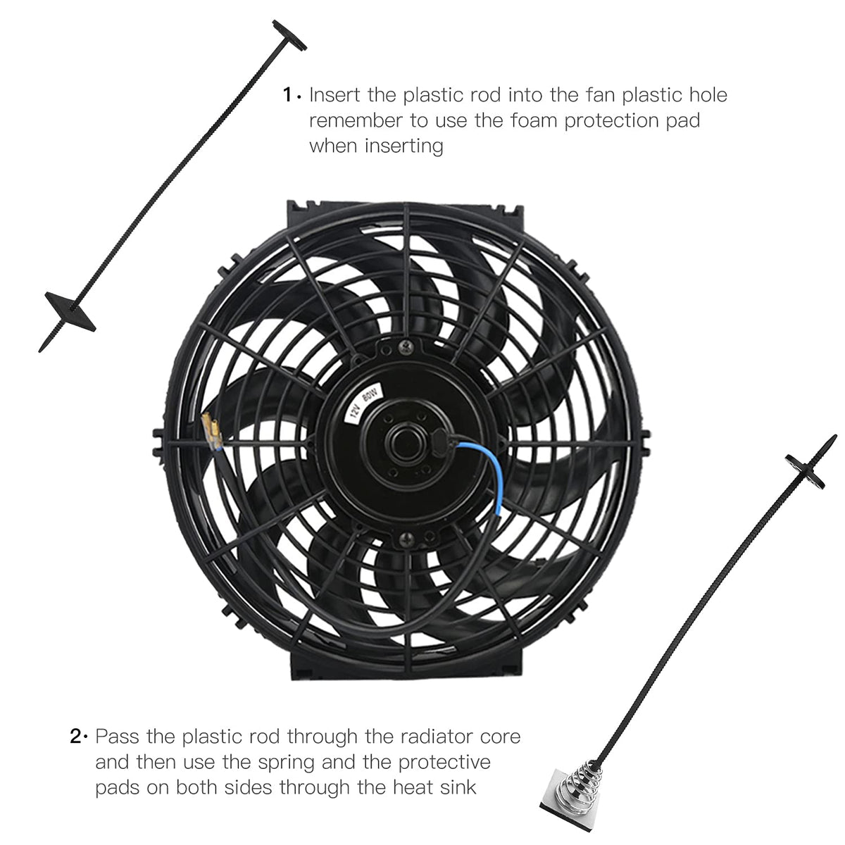 The car radiator fan unit is a part of the car's cooling system and is controlled by a thermostat switch or the vehicle. The role of the fan is to help blow cooling air into the radiator when the coolant level rises above a certain temperature. Over time, they begin to wear and may be impacted by stones and other contaminants. With these fan mounting repair kits, replacing the fan unit has never been easier. | Fan mounting kit compatible for transmission coolers and electric fans. | Equipped with protective springs: The set contains 4 protective springs, which can prevent the bottom of the installation from breaking. | Fast and effective installation saves you valuable time. | Included in the package: 4 X nylon mounting rod, 8 X foam pad, 4 X spring, 4 X fixed buckle.