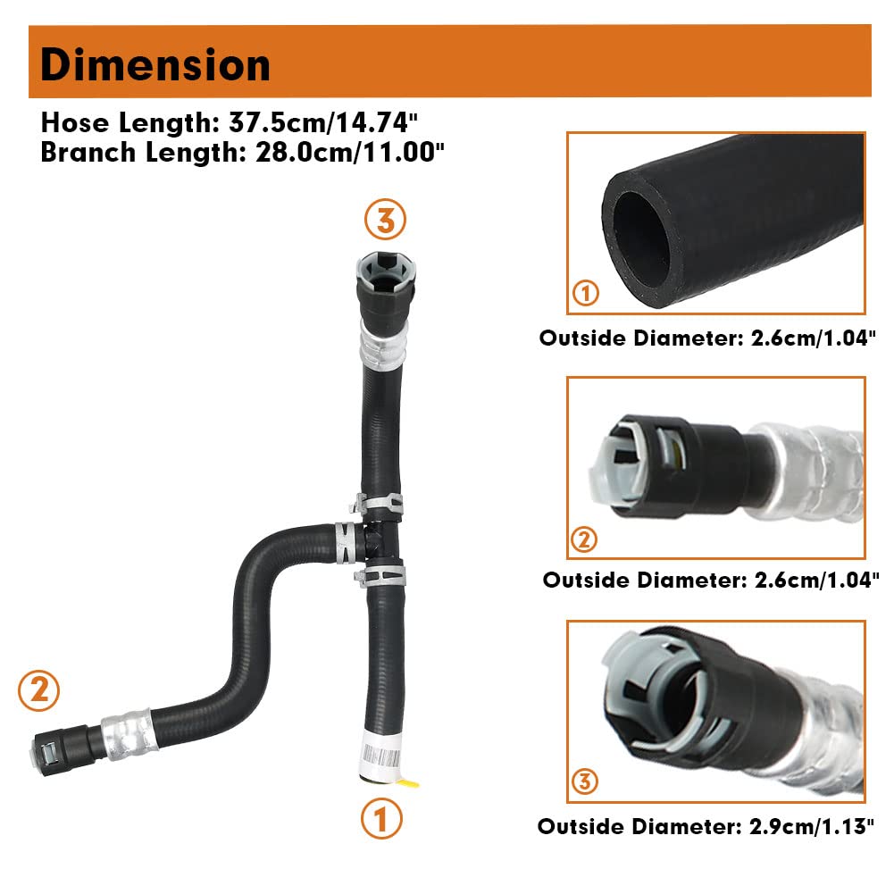 Q: What is the item size and weight of the FANHAY heater hose?A: The FANHAY heater hose measures 10.98 inches in length and 12.01 inches in width, with a total weight of 0.75 pounds, making it lightweight and easy to handle during installation.