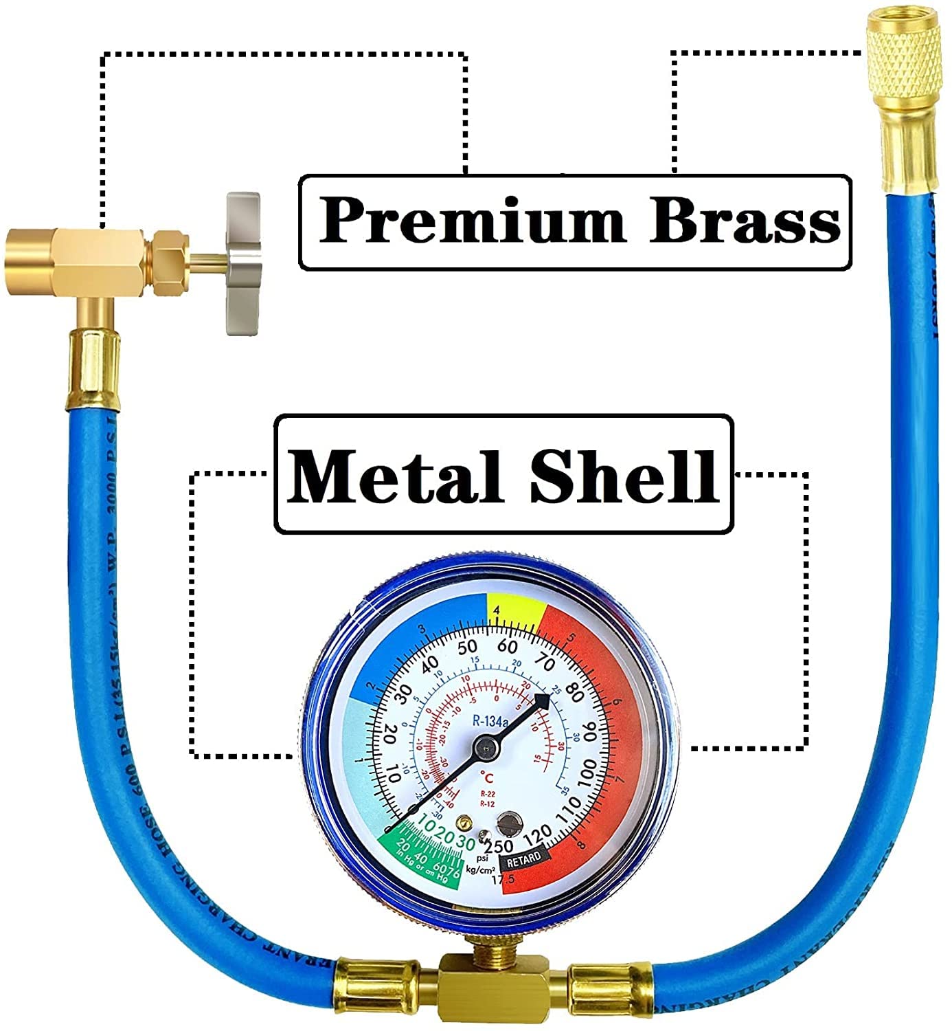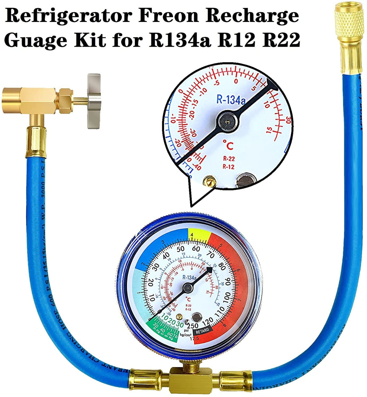 This Refrigerator Freon Recharge Hose Kit Is Used For Refilling Refrigerant For Home Refrigerator, Making Your Refrigerator Work Well. Meet Your Normal Need Abuot Repair Your Refrigerator. This Ac Refrigerant Charging Hose Set Fits For Both Piercing R134A Refrigerant Cans But Also Self-Sealing R134A Refrigerant Cans. Specification: Material: Brass And The Hose Adopted Quality Rubber Material Color:As The Picture Shows Size: The Total Length Of The Ac Refrigerant Charging Hose Is:22.83Inch(58Cm) From The R134A Can Tap To 1/4 Sae Female Port. Others' Length Is:19Inch(48Cm). Package Includes: 1Pcs X R134A Freon Recharge Hose With Guage 2Pcs X Bpv-31 Bullet Piercing Tap Valve 1Pcs X Rh R134A Self-Sealing Adapter Features: R134A Charging Kit:19 Hose With R-134A Can To R-12/R-22 Service Port Connection,1/4 End Fits R12,22,502 Fittings.And The Gauge Has Scale Readings For R134,R12&22 Easy To Install:Our Bpv-31 Bullet Piercing Tap Valve Kits Come In Compact Design That Only Requires A 2-Inch Clearance Area For Installation And Use,And You Only Need 1 Hex Key Wrench (Included) To Install The Kit Good Perfomance: Made Of Corrosion-Resistant Metal, Waterproof And Anti-Oxidizing To Ensure Reliable Performance And A Long Service Life. Warm Note: - Small Products, Please Keep Away From Children To Prevent Swallowing - Due To The Color Printing, There May Be Some Red Colors Dyeing On The White Stems, Please Use A Tool To Remove If You Mind -Manual Measurement, Please Allow Slight Errors On Size. -The Colors May Exist Slight Difference Due To Different Screens.