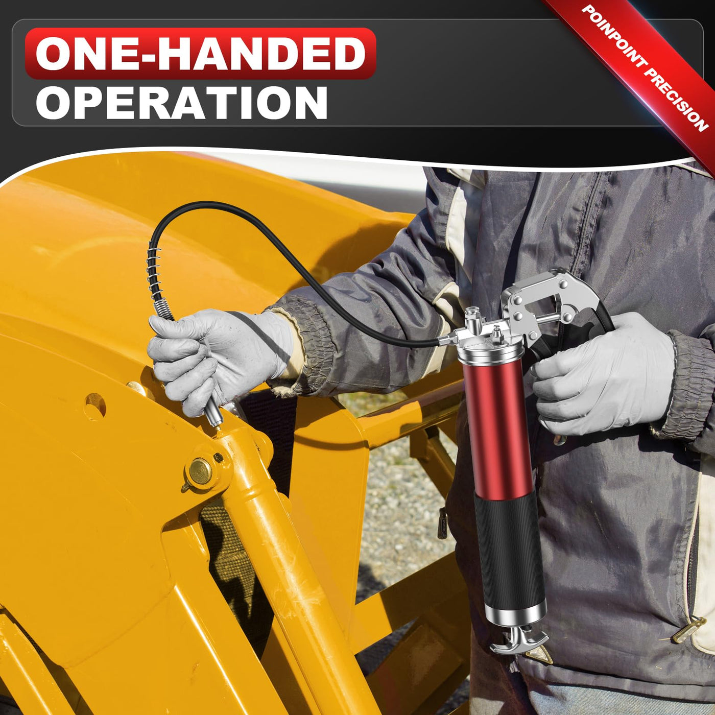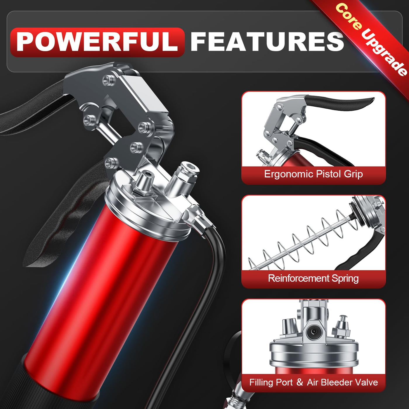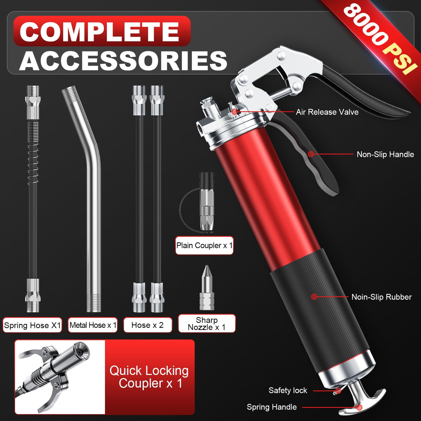 Fantictas Grease Gun Kit, 8000 Psi Heavy Duty Pistol Grip Grease Gun With Quick Locking Coupler, Spring Flex Hose, 14Oz Load, 2