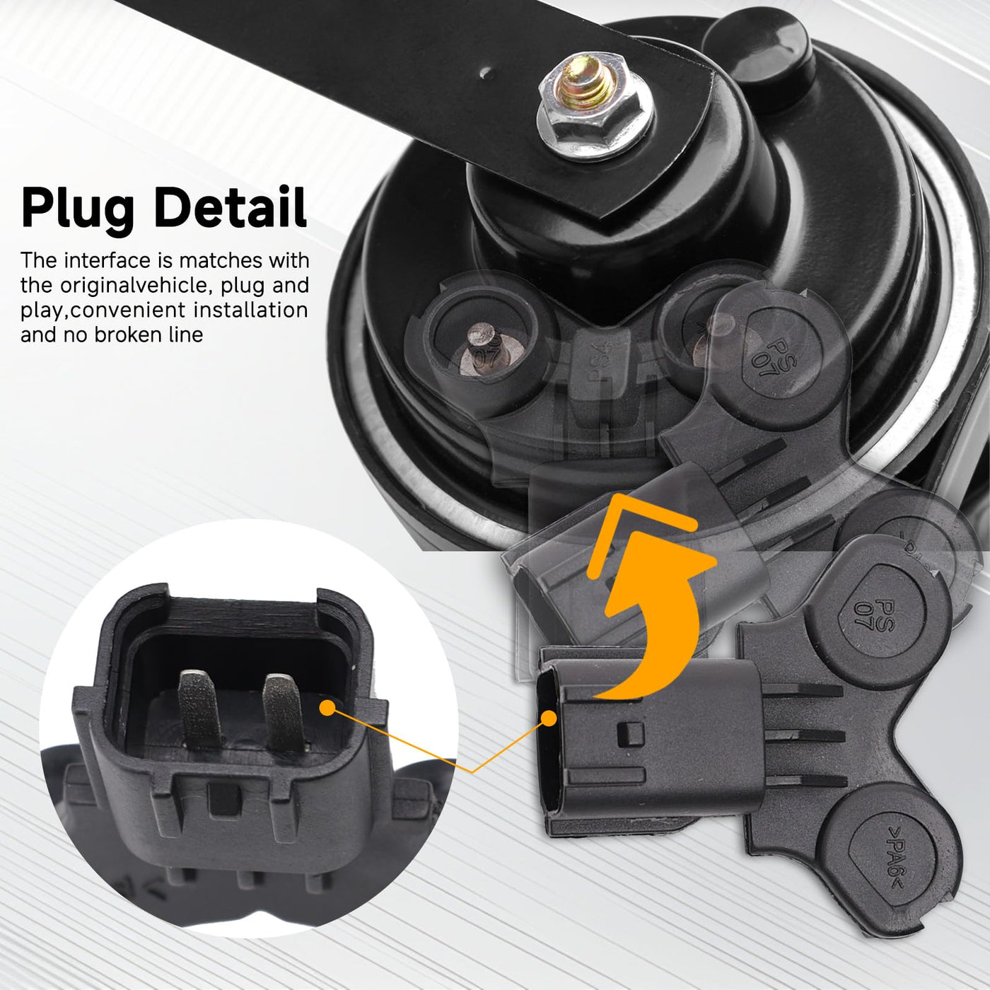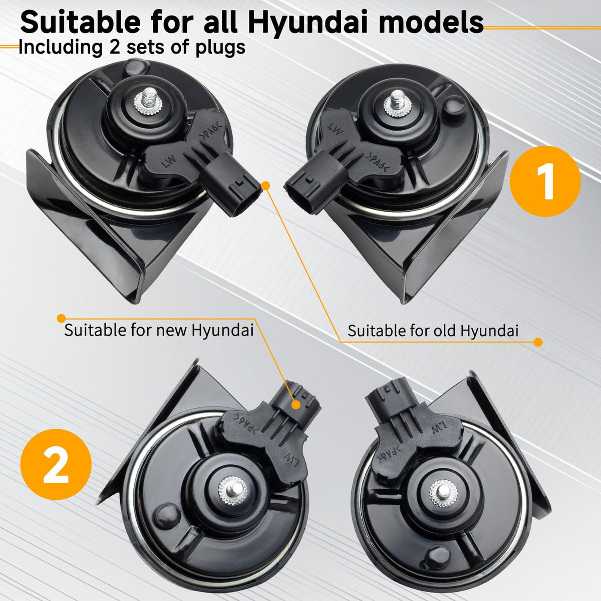 [Easy to install] - The Car horns are compatible with Hyundai / Kia / Verna. Special conversion plug put directly into car horn connector, no cutting or splicing needed, to make installs quick and easy, great as replacement for your old or broken ones. | [Include] - 12V car horn kit include 510hz high tone horn, 410hz low tone horn, 1 Pair of special connector, 1 pair of protective grille, 2 Nuts, 4 Support Plates. Material:Plastics shell + pure copper coil. | [125db bright alarm] - The horn loudness 115-125db, can issue a warning that can not be ignored, attract more attention, avoid more accidents on the road, help to warn other vehicles and pedestrians, ensure your safety. | [Strong, durable, waterproof] - The snail horn use of high-quality ABS material + protective grille + 360