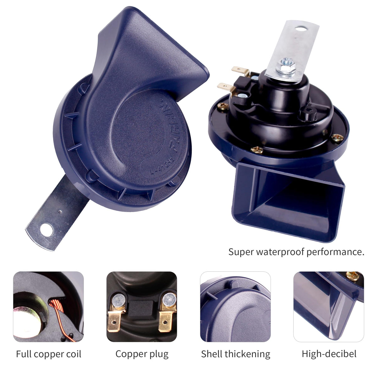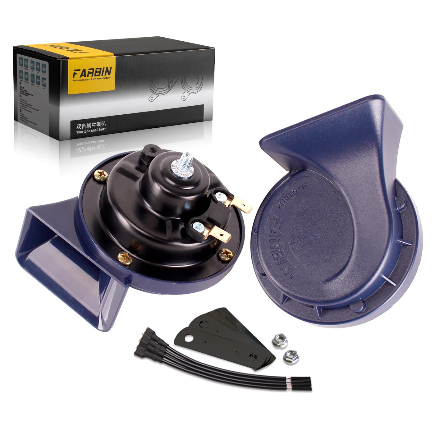 Farbin Horn 12V Car Horns Loud Dual-Tone Waterproof Auto Horn Electric Snail Horn Kit Universal For Any 12V Vehicles (Blue Horn,