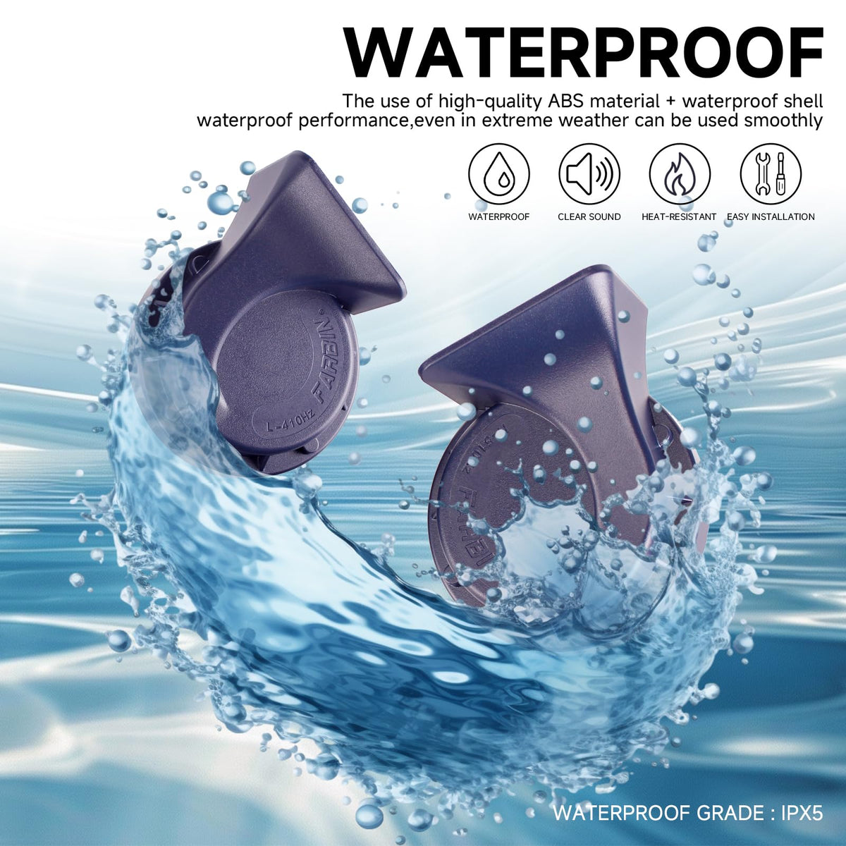 Farbin Horn 12V Car Horns Loud Dual-Tone Waterproof Auto Horns Electric Snail Horn Kit Universal For Any 12V Vehicles (Blue Horn