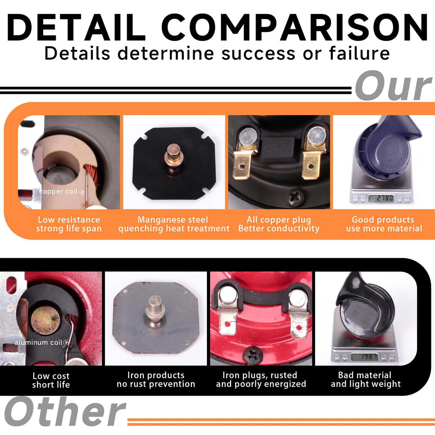 The shape of this horn is very compact and mini, and it can be easily installed in a small space, This is an electric snail horn with a powerful and a high quality sound level. Applicable for many different vehicle models, including truck, lorrys cars vans SUV RV motorcycles off road. Name: FARBIN Snail Horn Color: Black Sound Level: 120DB Voltage: 12V Current: 7A Package Weight: 720g Material: Copper Wire Coil + ABS Shell Applicable: Car / Truck / Pickup / RV / SUV / MPV / Van/ Motorcycle Include: High Note Horn+Low Note Horn+2 Nuts + 4 Support Plates+4 Lines If you have any installation and wiring problems, you can contact us at any time, and we will serve you until you are satisfied! Thank you very much for your support of FARBIN products!