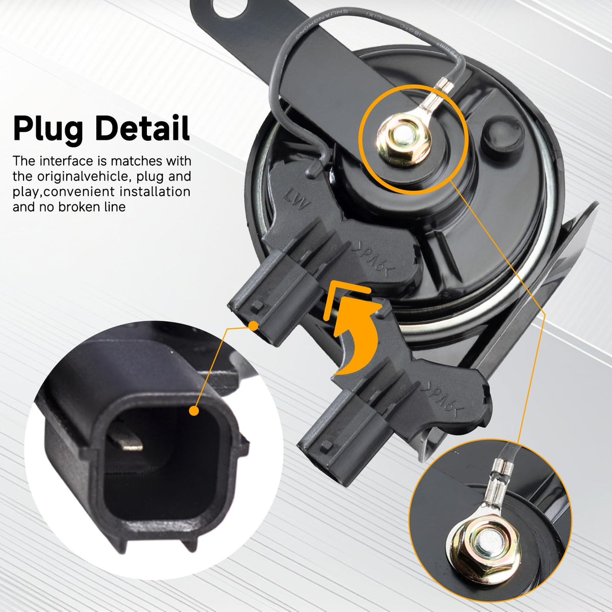 The horns are suitable for Honda Series. Name: FARBIN Special Horn Color: Black Sound Level: 130DB Voltage: 12V Current: 7A Package Weight: 720g Material: Copper Wire Coil + ABS Shell Include: High Note Horn+Low Note Horn+2 Nuts + 4 Support Plates If you have any installation and wiring problems, you can contact us at any time, and we will serve you until you are satisfied! Thank you very much for your support of FARBIN products!