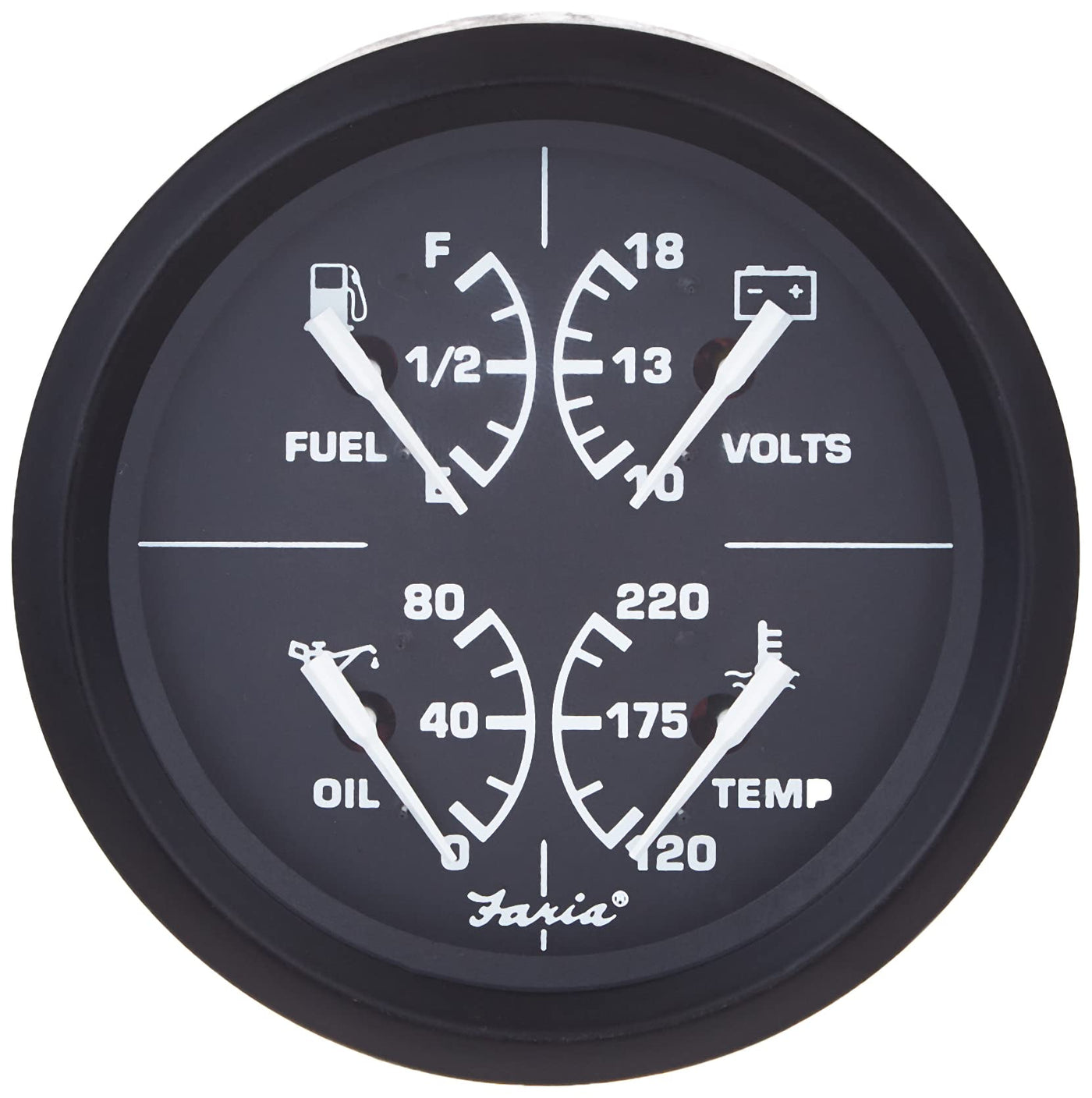 Q: How do I install the Faria Euro Multifunction Gauge?A: Installation of the Faria Euro Multifunction Gauge requires a mounting hole of 3.375" (85 mm). Ensure that you properly connect the gauge to the respective sensors for oil pressure, fuel level, and temperature to ensure accurate readings.