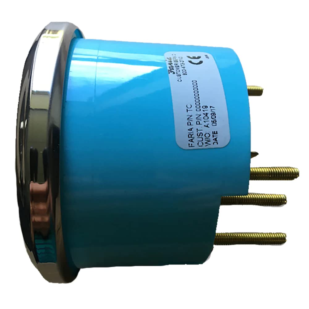 Q: What materials are used in the construction of the Faria Tachometer?A: The Faria Tachometer is constructed from high-quality stainless steel, featuring a polished bezel and a domed glass lens, providing durability and an attractive aesthetic.