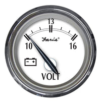 Q: What voltage range does the Faria Newport SS 2" Voltmeter support?A: The Faria Newport SS 2" Voltmeter is designed to measure voltage levels between 10 to 16 volts, making it ideal for various automotive and marine applications.