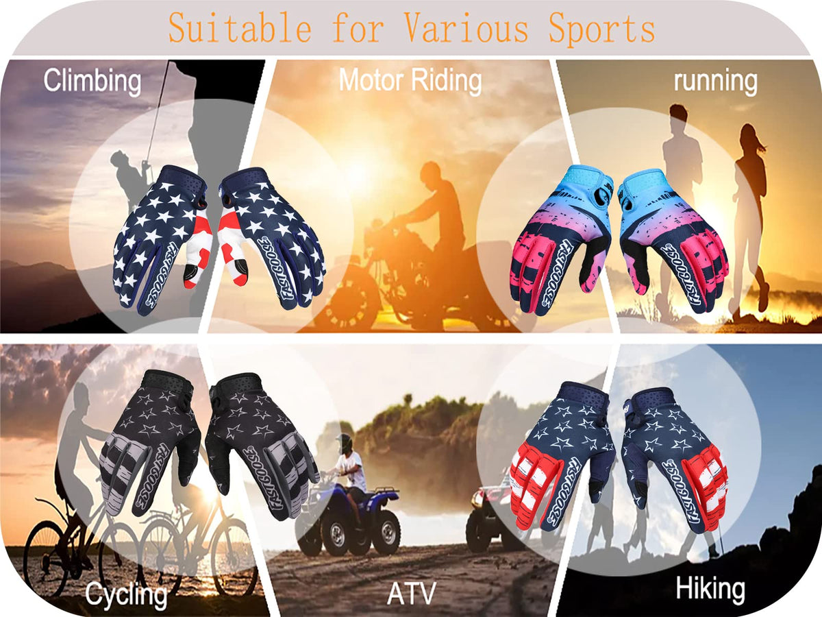 Q: What activities are FASTGOOSE Motorcycle Gloves suitable for?A: FASTGOOSE Motorcycle Gloves are ideal for various activities including ATV and UTV riding, motocross, dirt biking, cycling, climbing, hunting, and other outdoor sports. Their versatile design makes them perfect for both recreational and competitive use.