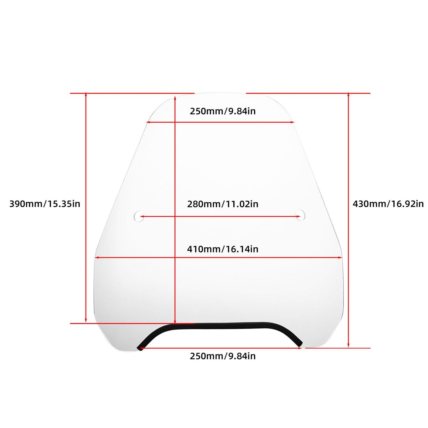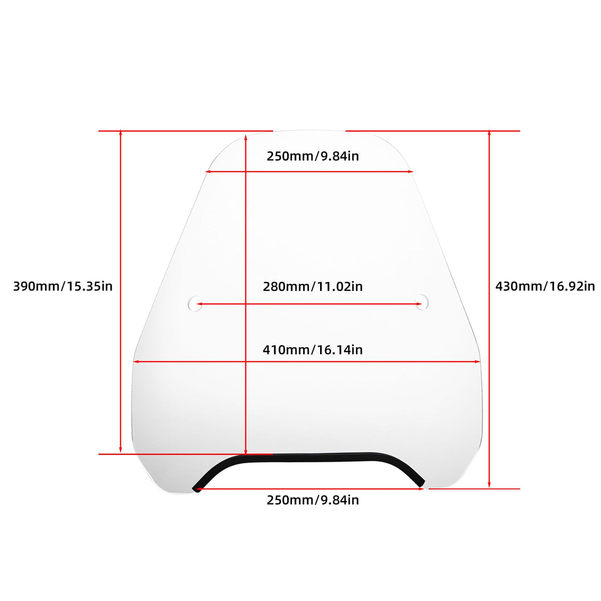FATECIM 15'' Clear Motorcycle Windscreen Windshield Motorbike Wind Deflector Flyscreen Universal for Harley Davidson Honda Kawas