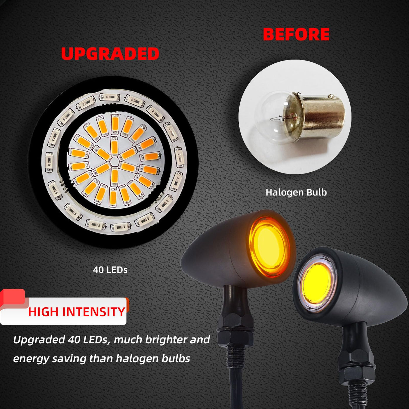 Fatecim 4X Motorcycle 40 Led Bullet Tail Lights Turn Signals Running Brake Stop Lights Motorbike Taillights Rear Front Blinkers