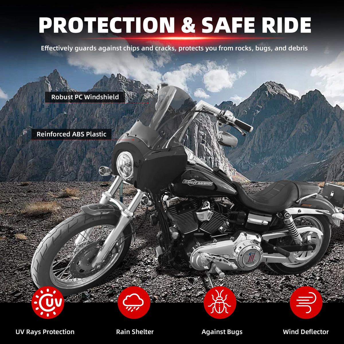 FATECIM Motorcycle Headlight Fairing Cover with 15'' Smoke Windshield Fits for Harley Dyna FXDXT T-Sport (Smoke Windshield)