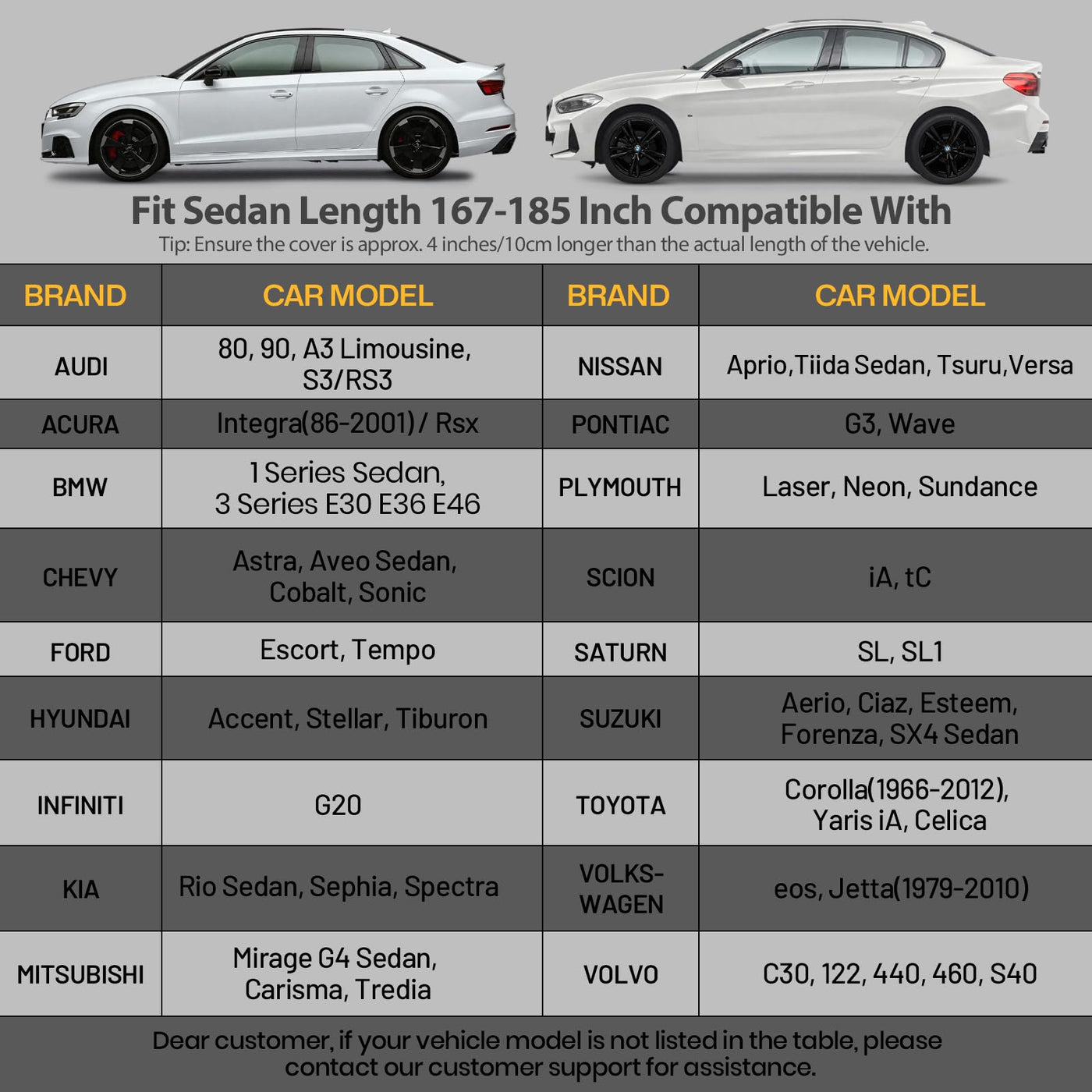 Favoto 6-Layers Sedan Car Cover All Weather For Automobiles Car Trap Waterproof Outdoor Sun Snow Protection With Door Zipper Reflective Stripe Windproof Strap Details:Material: Peva+Cottondimension: 185 '' X 67 '' X 59 '' / 4.65M X 1.7M X 1.5Mweight: 6.05 Lb / 2.75 Kgsuitable For: 167 To 185 Inch / 4.25 To 4.7 Meters In Length Sedan Carscolor: Blackfeature: With Driver Door Zipper, 2 Windproof Straps, Reflective Stripes, 4 Wheel Tie-Down Straps, Elastic Band Package Includes:1 X Favoto Car Cover1 X Windproof Strap1 X Storage Bag