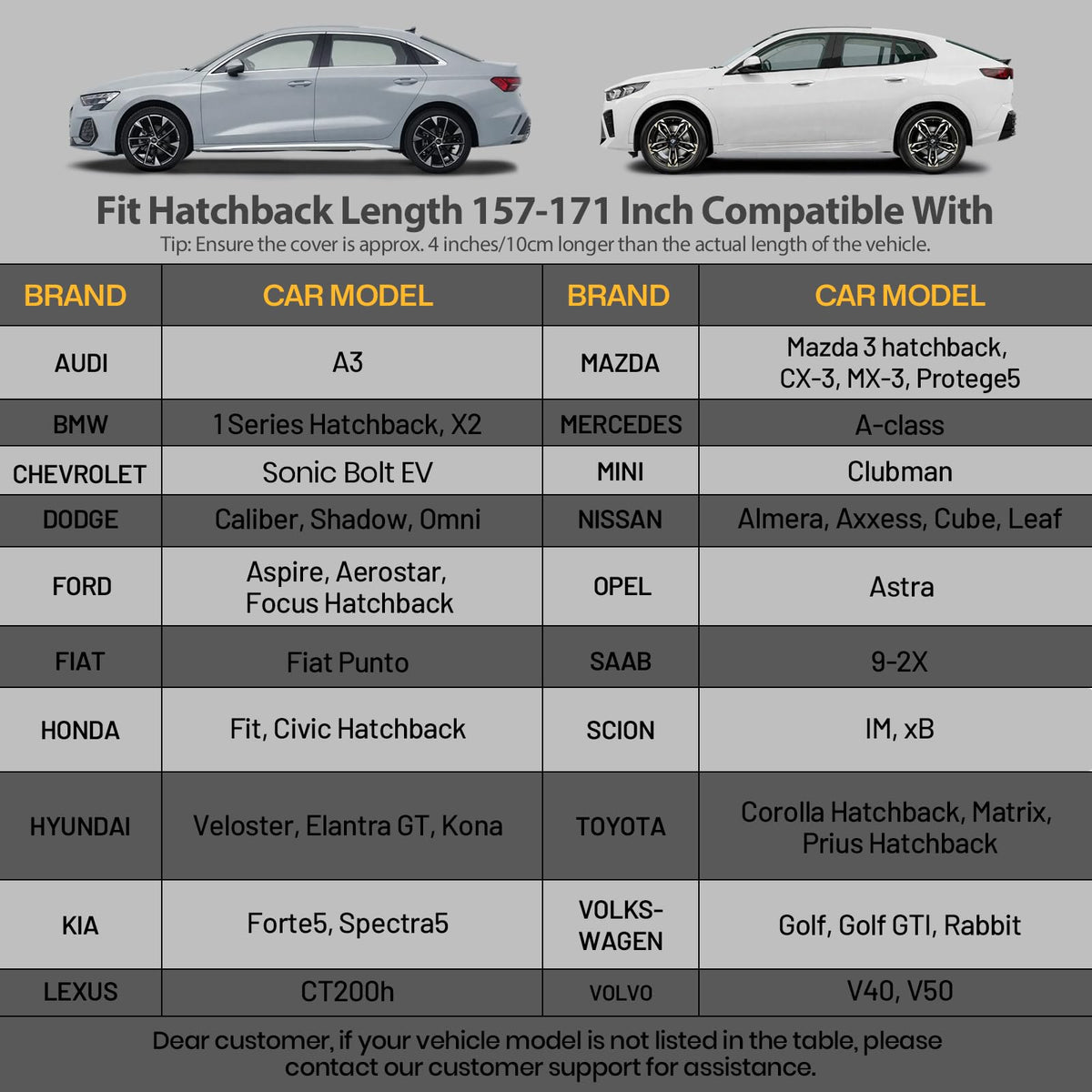 Favoto 6-Layers Hatchback Car Cover Waterproof All Weather For Automobiles Car Trap Outdoor Sun Snow Protection With Door Zipper Reflective Stripe Windproof Strap Details:Material: Peva+Cottondimension: 171'' X 71'' X 63'' / 4.35M X 1.8M X 1.6Mweight: 6.1 Lb / 2.77 Kgsuitable For: 157 To 171 Inch / 4 To 4.35 Meters In Length&Nbsp;Hatchback Carscolor: Blackfeature: With Driver Door Zipper, 2 Windproof Straps, Reflective Stripes, 4 Wheel Tie-Down Straps, Elastic Band Package Includes:1 X Favoto Car Cover1 X Windproof Strap1 X Storage Bag