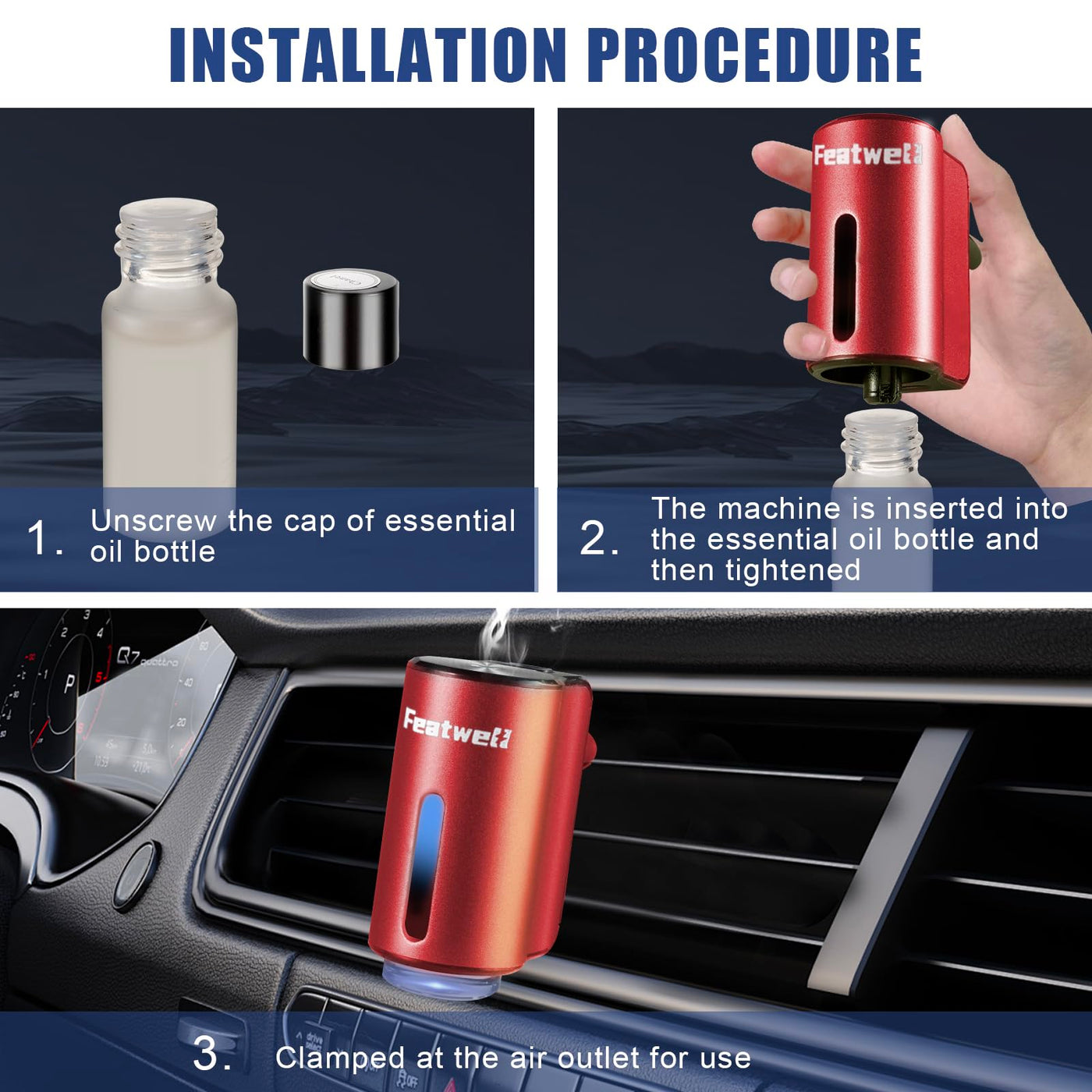 Featwell Car Aromatherapy/Fragrance car Air fresheners/Humidifier Essential Oil Diffuser for Vehicle (Red)