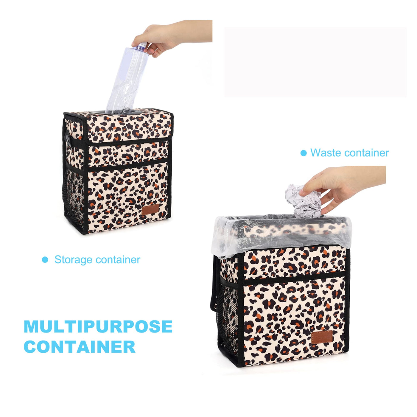 Femuar Car Trash Can Leak Proof Car Trash Bag Large Capacity Waterproof Car Garbage Can With Lid For Suv Large/Leopard Print