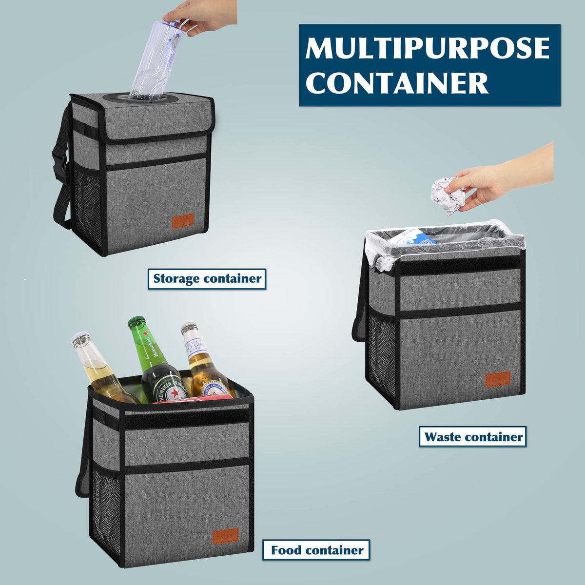 Q: Can I use the Femuar Car Trash Can for storing food items?A: Yes, the PEVA lining of the Femuar Car Trash Can offers thermal insulation, making it suitable for storing hot food, cold drinks, or snacks alongside regular waste.