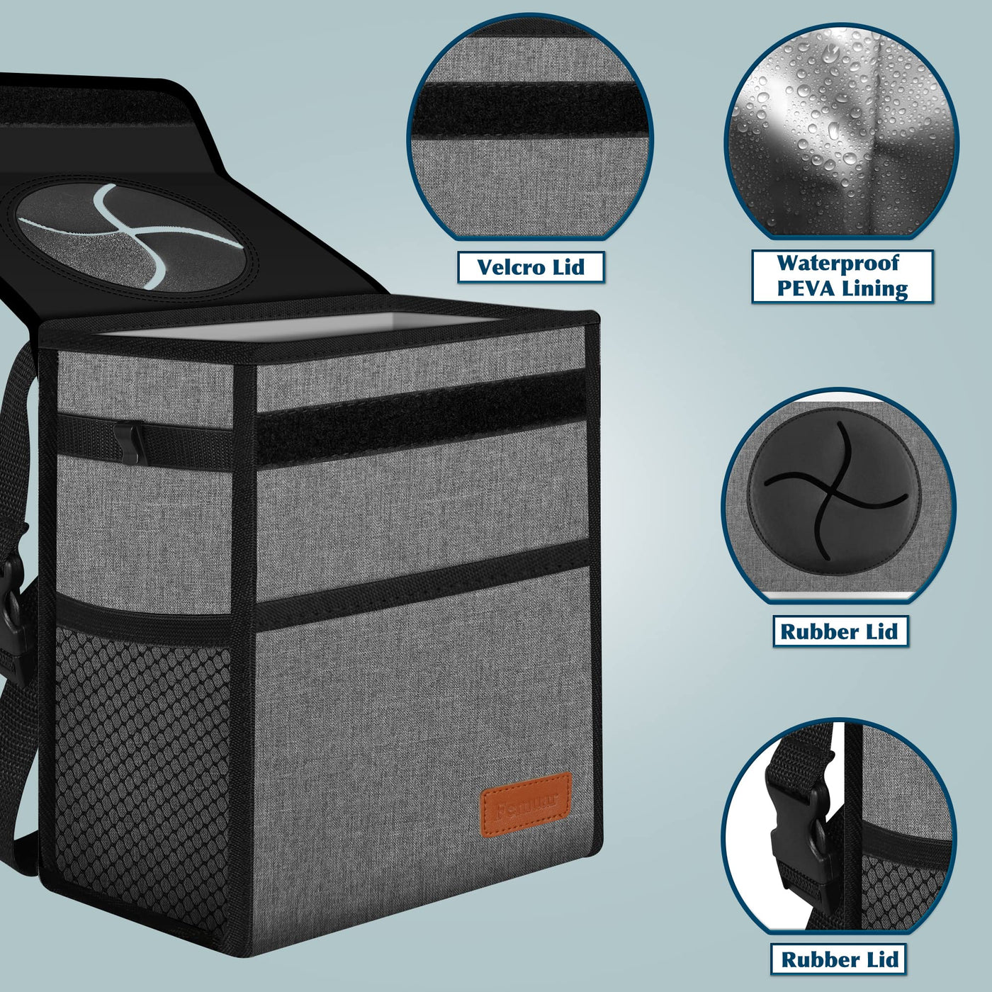 Femuar Specially Made Car Trash Can, You Can Use It To Store The Tissues, Wrappers, Napkin, Bottles And Even Unfinished Drinking Anywhere And Anytime! With Femuar Car Garbage Can, You No Longer Have To Worry About The Messy Interior Of The Car. It Will Make You Fall In Love With Life And Travel Crafted For A Convenient Life: Outer Material: 600D High Quality Oxford Fabric Inner Material: Leak-Proof Vinyl Lining Size: 9.25*5.25*10.75 Inches Easy To Install And Collapsible Adjustable Nylon Buckle Multiple Storage Pockets Two Side Clips To Hold And Replace Disposable Plastic Bags Easily The Inside Is Very Easy To Wipe Clean Superior Durability It Has A Large Capacity But Only Takes Up A Small Place All Our Products Are Based On The Needs Of Customers, If You Need This Car Garbage Bin, You Will Not Regret Choosing It Please Don'T Hesitate, It Is Worth Yours.