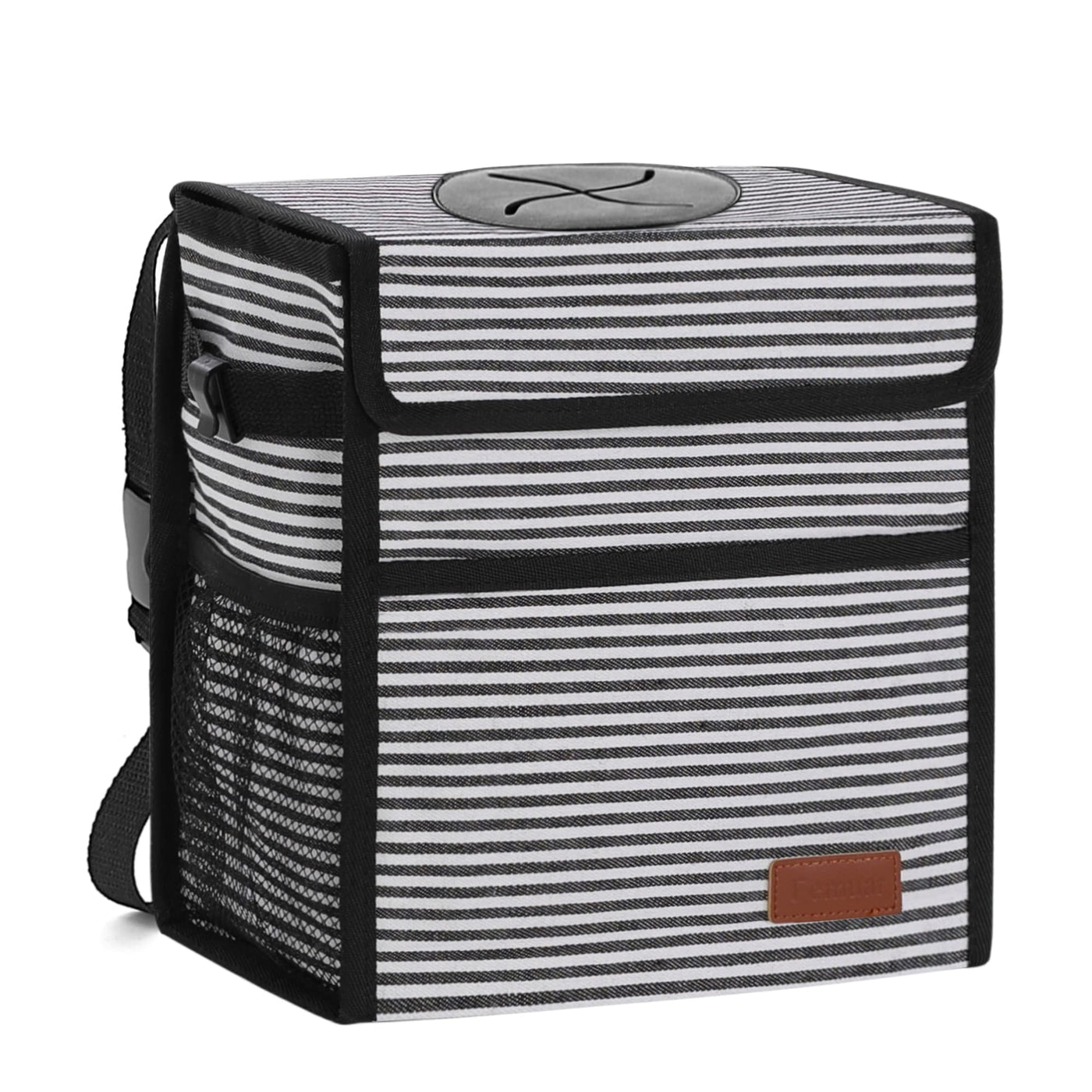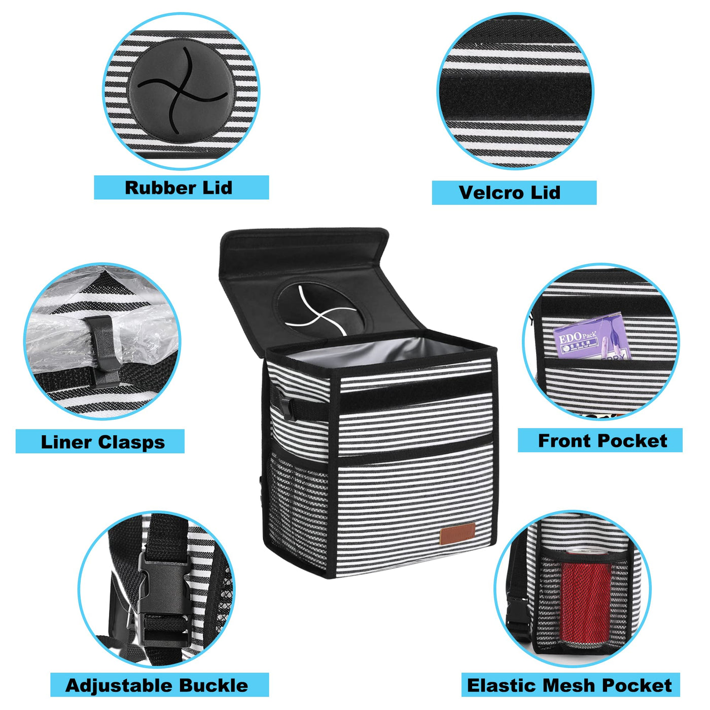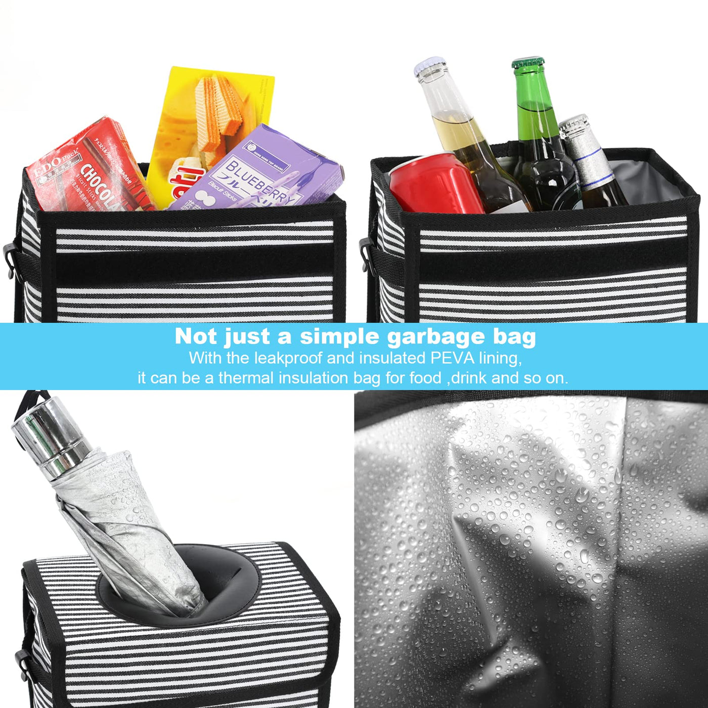 Femuar Car Trash Can Leak Proof Car Trash Bag Waterproof Car Garbage Can With Lid With Storage Mesh Pocket, Large/Stripe