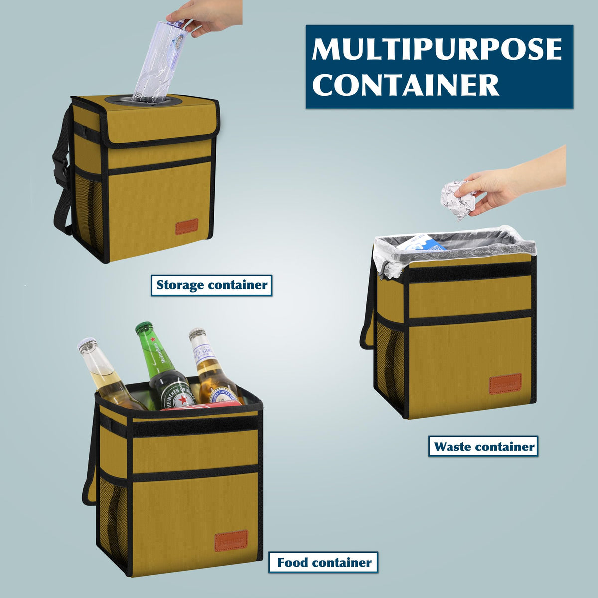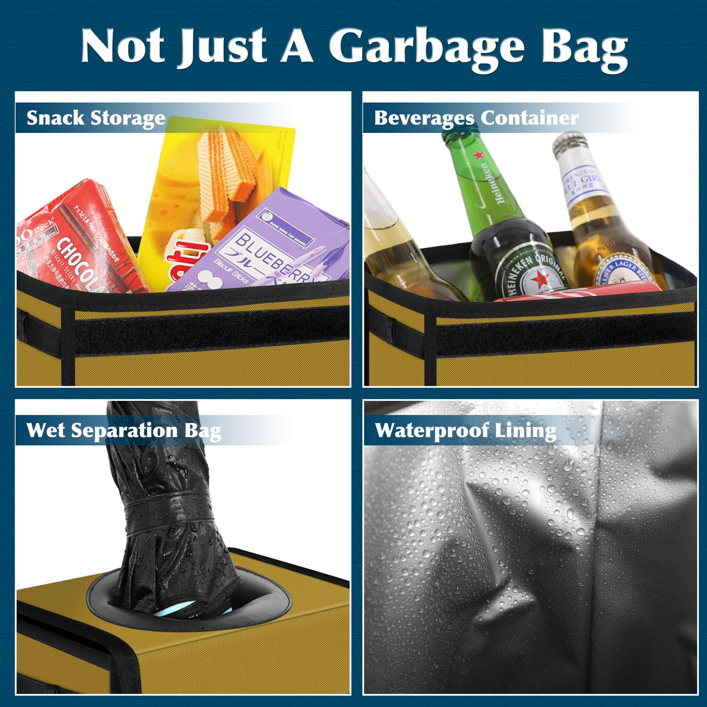 Femuar specially made car trash can car accessories, you can use it to store the tissues, wrappers, napkin, bottles and even unfinished drinking anywhere and anytime! With Femuar Car Garbage Can, you no longer have to worry about the messy interior of the car. It will make you fall in love with life and travel Crafted for a convenient life: Outer Material: 600D high quality Oxford fabric Inner Material: Leak-proof vinyl lining Size: 9.25*5.25*10.75 inches Easy to install and collapsible Adjustable nylon buckle Multiple storage pockets Two side clips to hold and replace disposable plastic bags easily The inside is very easy to wipe clean Superior durability It has a large capacity but only takes up a small place All our products are based on the needs of customers, if you need this car garbage bin, you will not regret choosing it Please don't hesitate, it is worth yours.