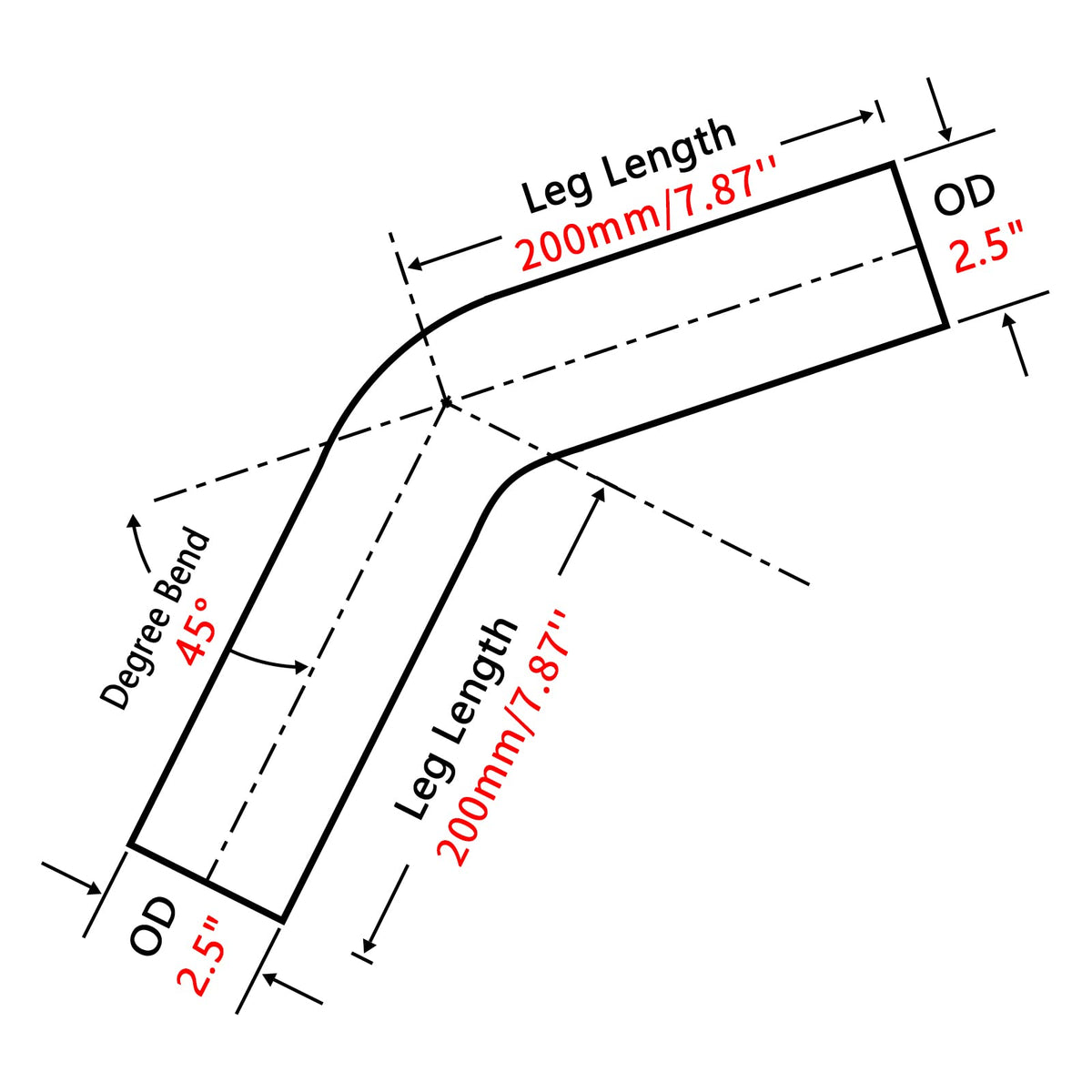 Fgjqefg 2.5 Inch 45 Degree Diy Custom Mandrel Exhaust Pipe Tube Pipe, T304 Stainless Steel, Universal Fit, 15.74 Inch End To End
