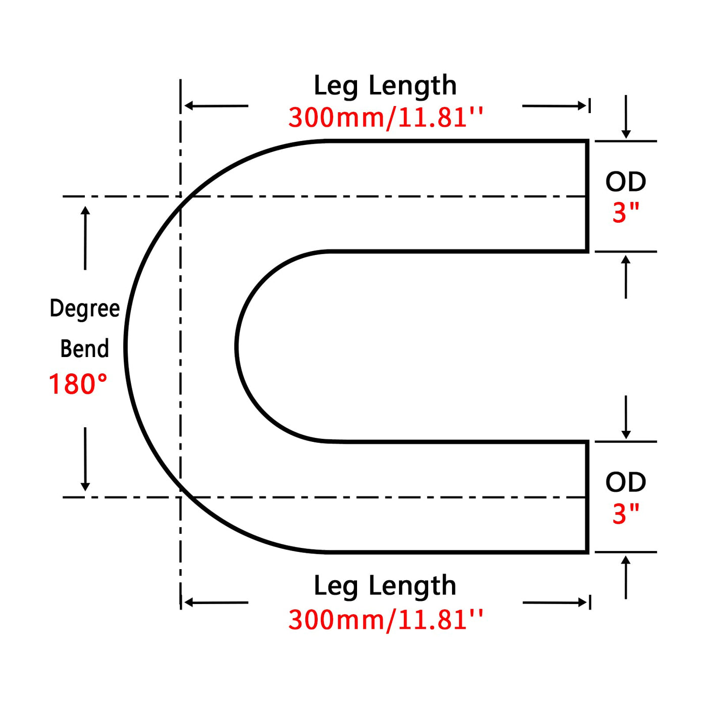Fgjqefg 3 Inch 180 Degree Diy Custom Mandrel Exhaust Pipe Tube Pipe, T304 Stainless Steel, Universal Fit, 23.62 Inch End To End