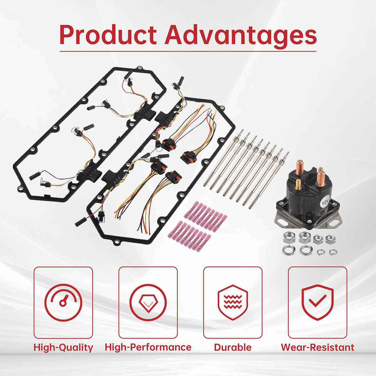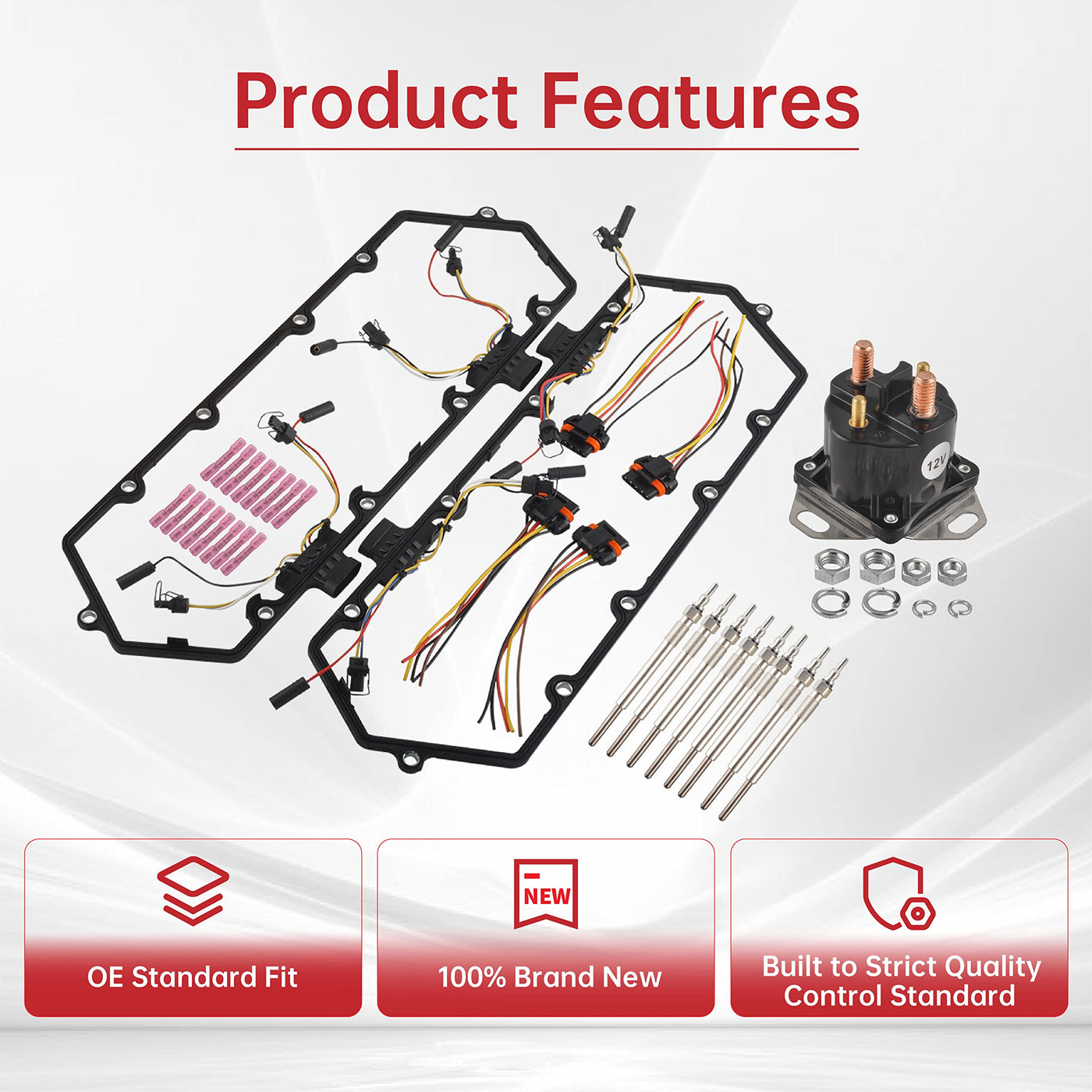 FGJQEFG Injector Glow Plug Harnesses + Valve Cover Gaskets + Relay Solenoid Compatible with 94-97 7.3L Ford F250 E350 Powerstrok