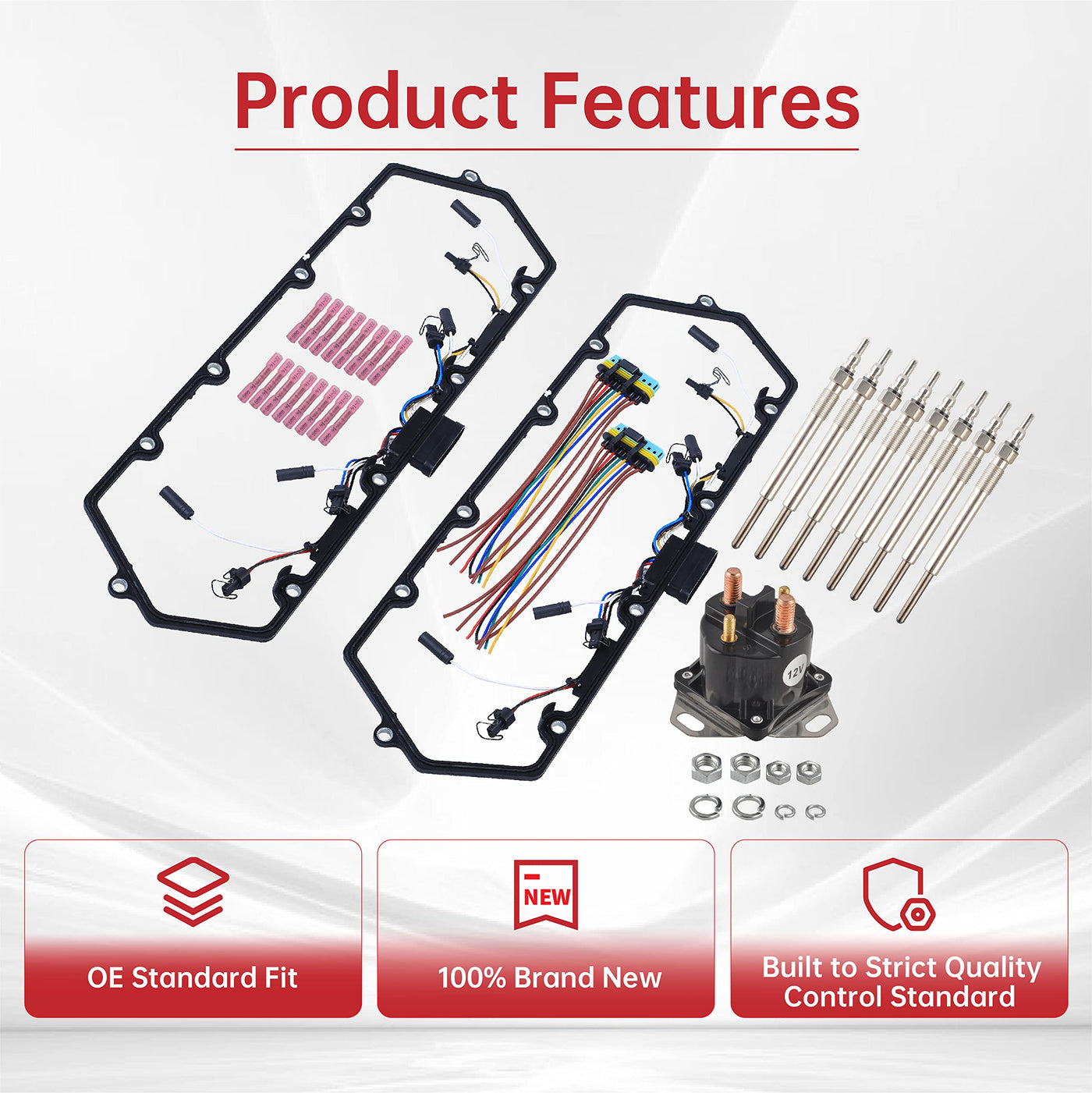 FGJQEFG Valve Cover Gaskets + Harness Glow Plugs + BK Relay with Inner Injector Compatible with 7.3L Ford F250 F350 E250 E350 Di