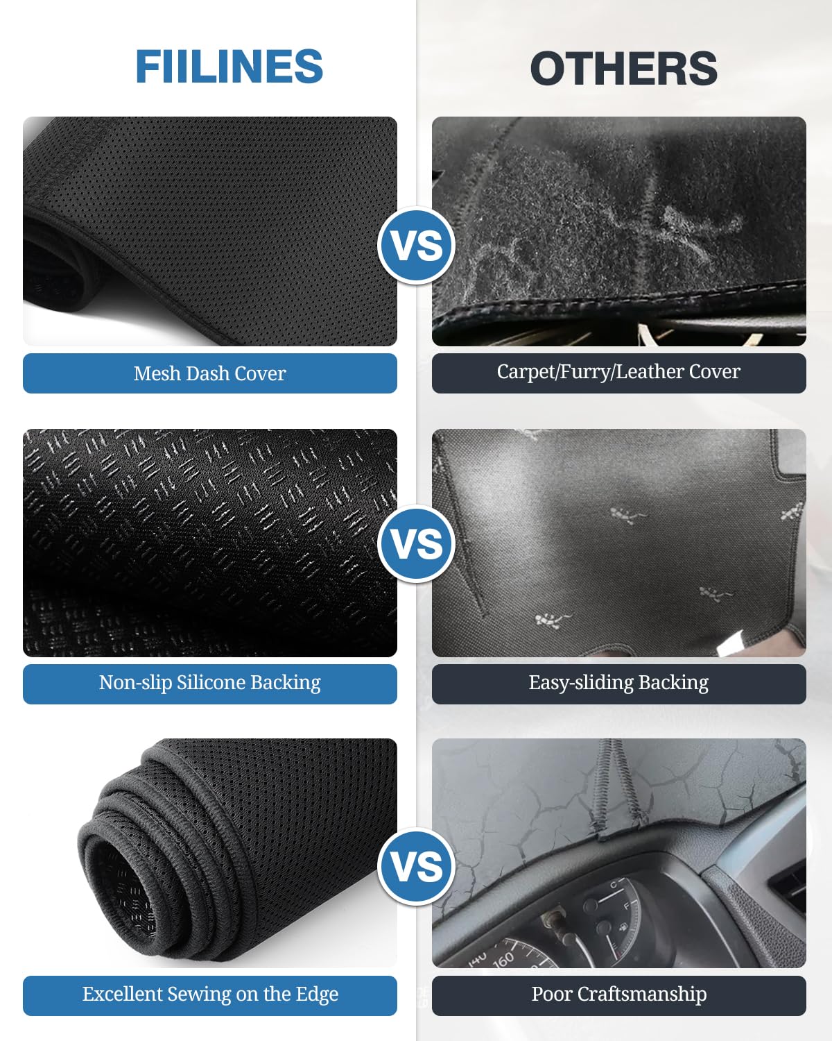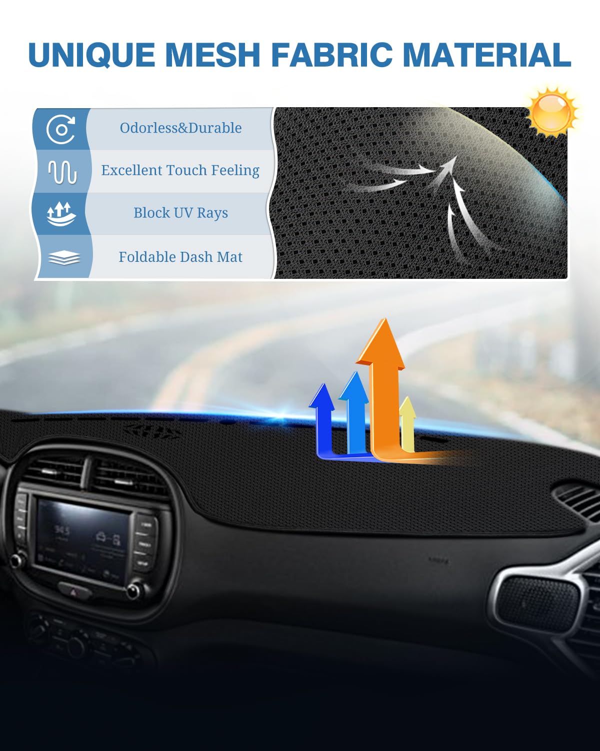 Fiilines Custom Fit For Dash Cover 2014-2019 Kia Soul Dashboard Mat Cover Sunshade Nonslip Mesh Protector No Glare