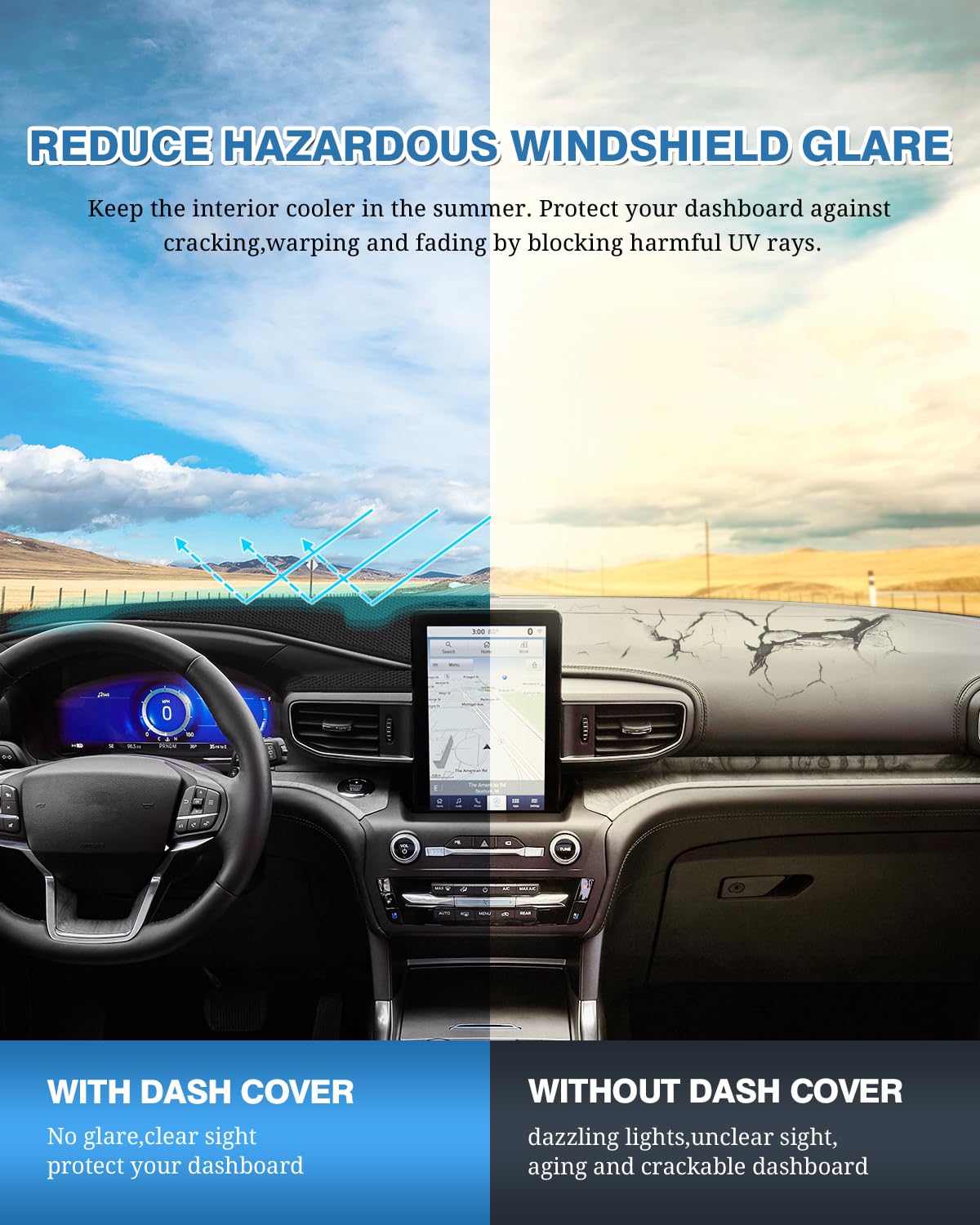 Fiilines Dash Cover For 2020-2025 Ford Explorer, Dashboard Mat Cover Sunshade Nonslip Mesh Protector No Glare Black