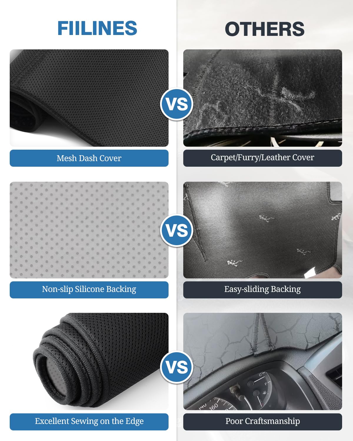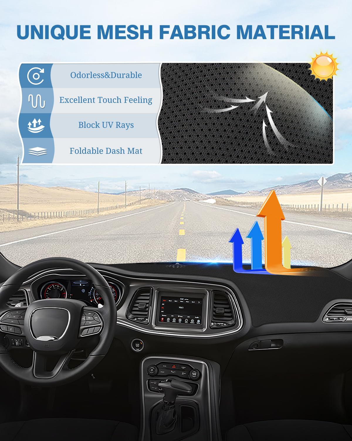 Fiilines Dash Cover For Dodge Challenger 2015-2024, Dashboard Mat Cover Challenger Accessories Sunshade Nonslip Mesh Protector N