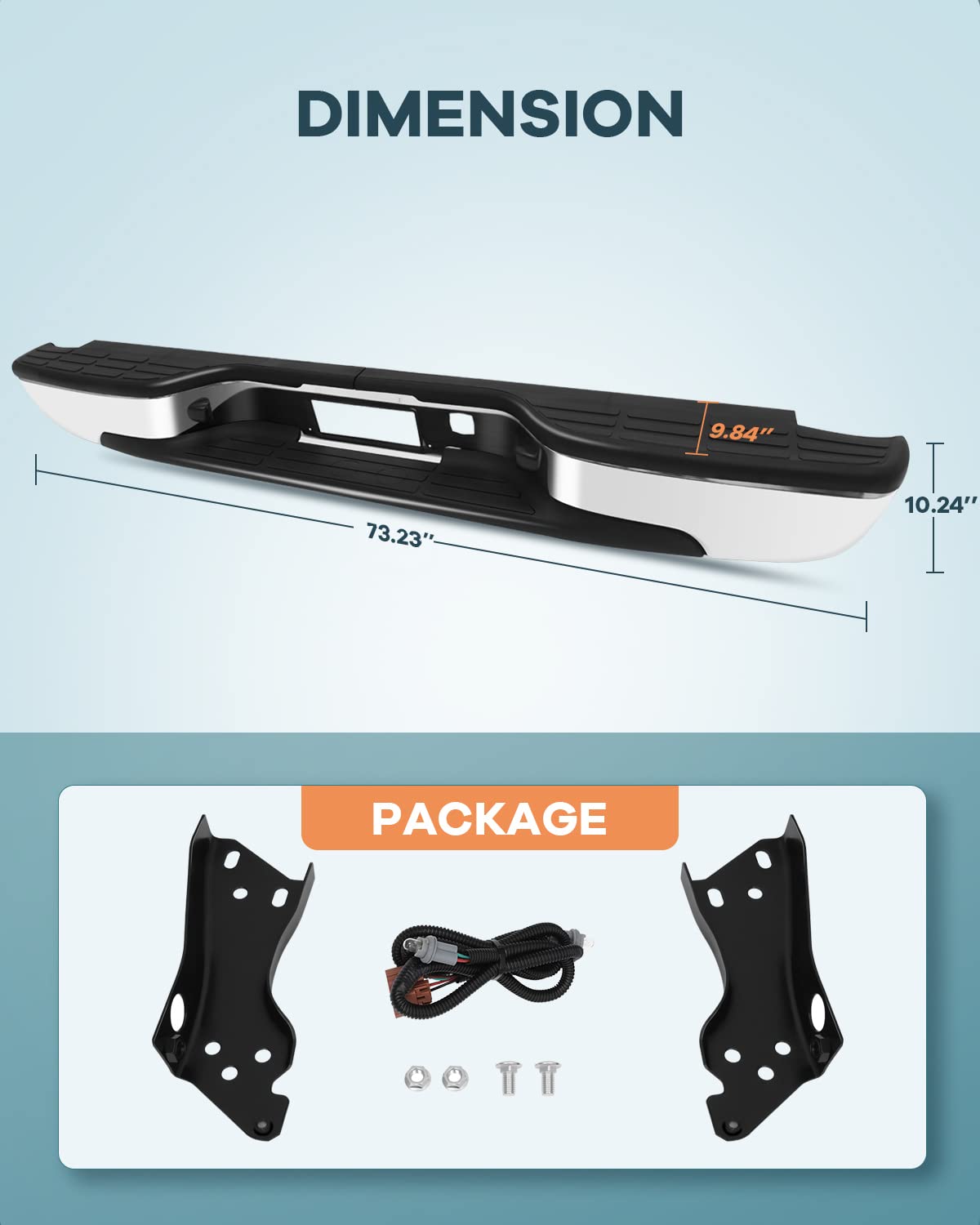 Findauto Chrome Rear Step Bumper,Back Bumper Fit For 1999-2006 For Chevrolet Silverado 1500 And For Gmc Sierra 1500, 2007 For Chevrolet Silverado 1500 Classic And For Gmc Sierra 1500 Classic