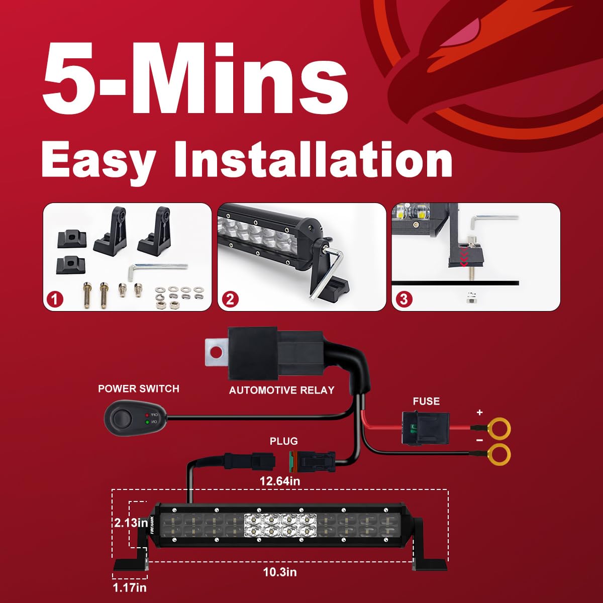 Firehawk Led Light Bar 10 Inch 35,000Lm, 2025 New Japanese L-A-B Chips, Spot Flood Combo Beam, Driving Off Road Fog Work For Tru