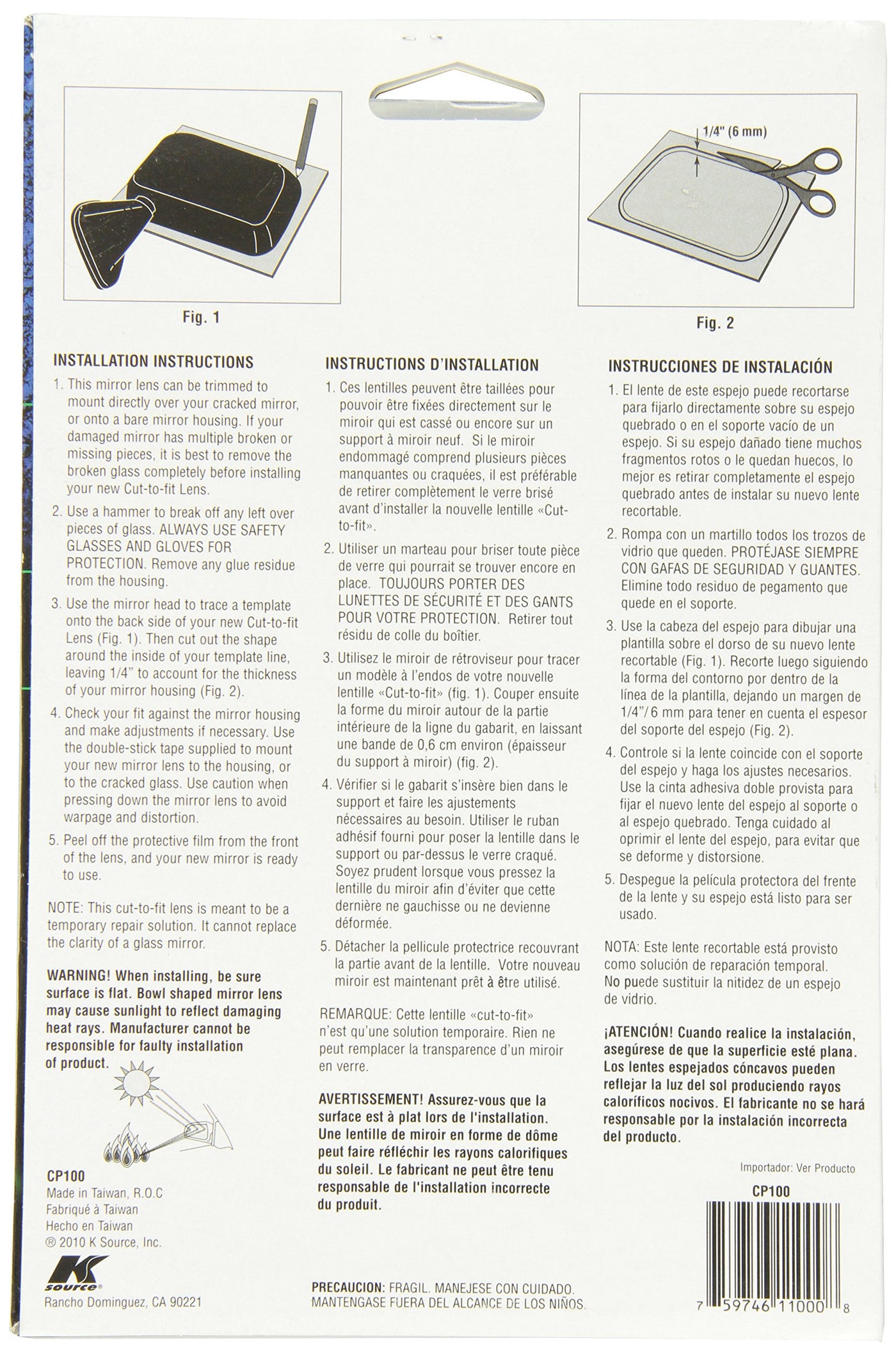 Cut-to-fit Lens, Large. 7'' x 10'' Cut-To-Fit Replacement Lens. Multiple uses wherever you need a mirror. Fixes vehicle mirrors easily. Adhesive mounting tape included. Must be used on flat surfaces.
