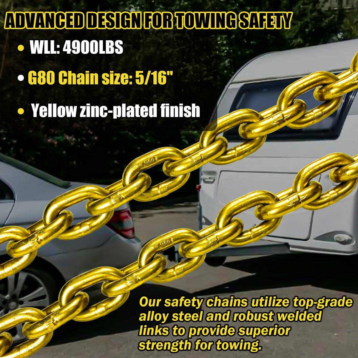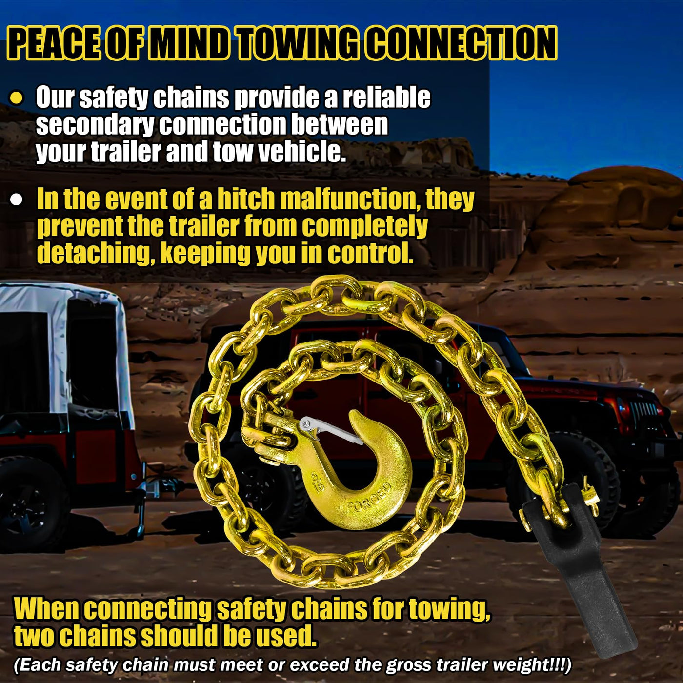 Q: What is the weight capacity of the FITHOIST G80 Trailer Safety Chain?A: The FITHOIST G80 Trailer Safety Chain has a Safe Working Load (SWL) of 4,900 pounds, making it suitable for towing heavy vehicles, trailers, and boats.