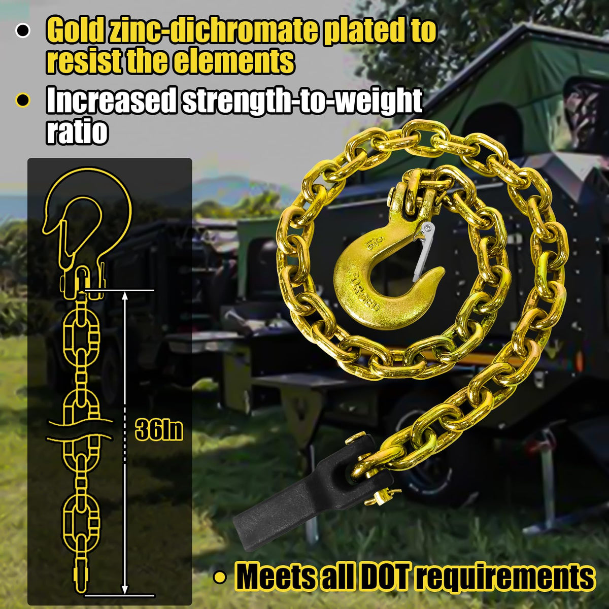 Fithoist G80 Trailer Safety Chain 36 Inch | Tow Chain With 5/16'' Clevis Snap Hook & Retainer | 2-Pack Heavy Duty Wll 21,000 Lbs