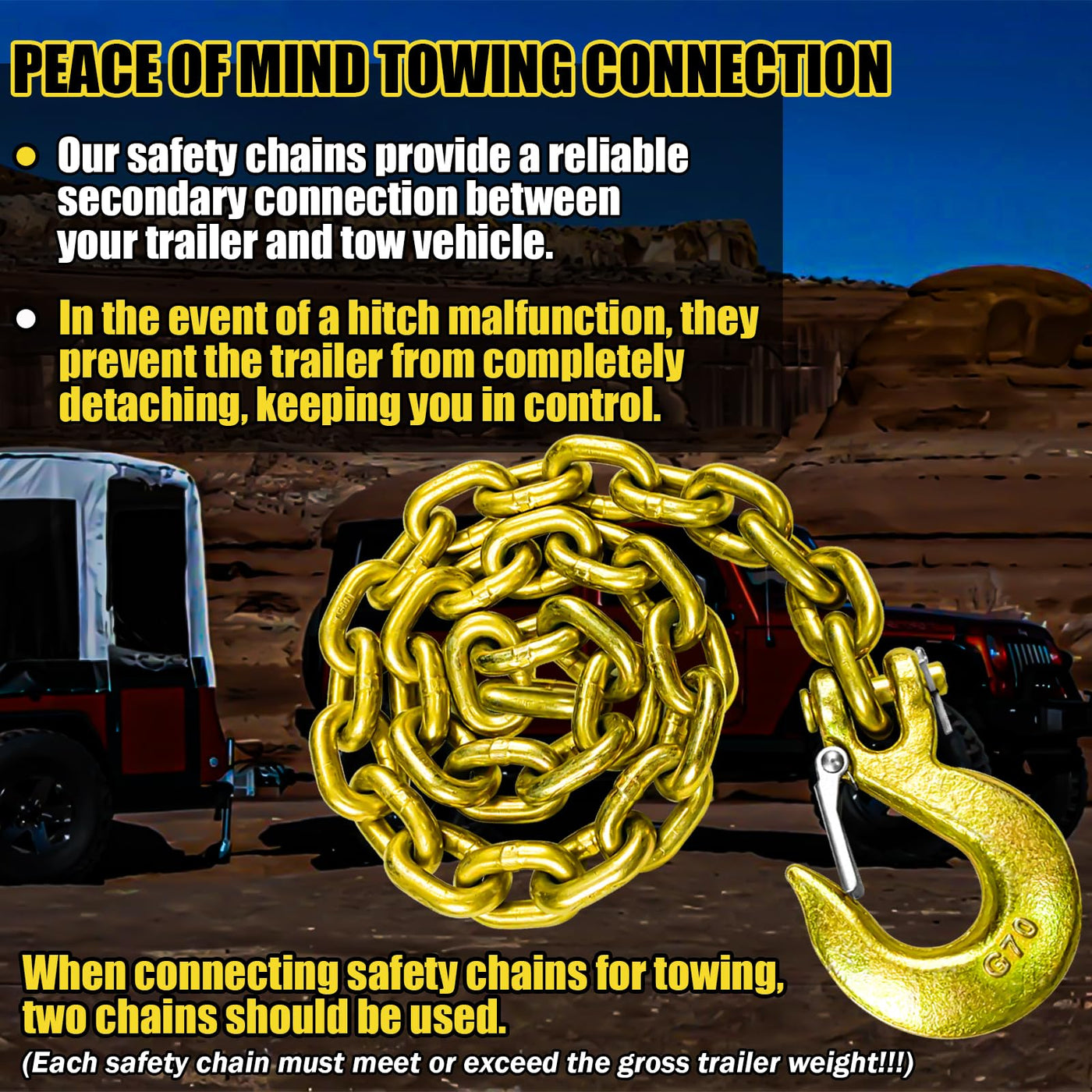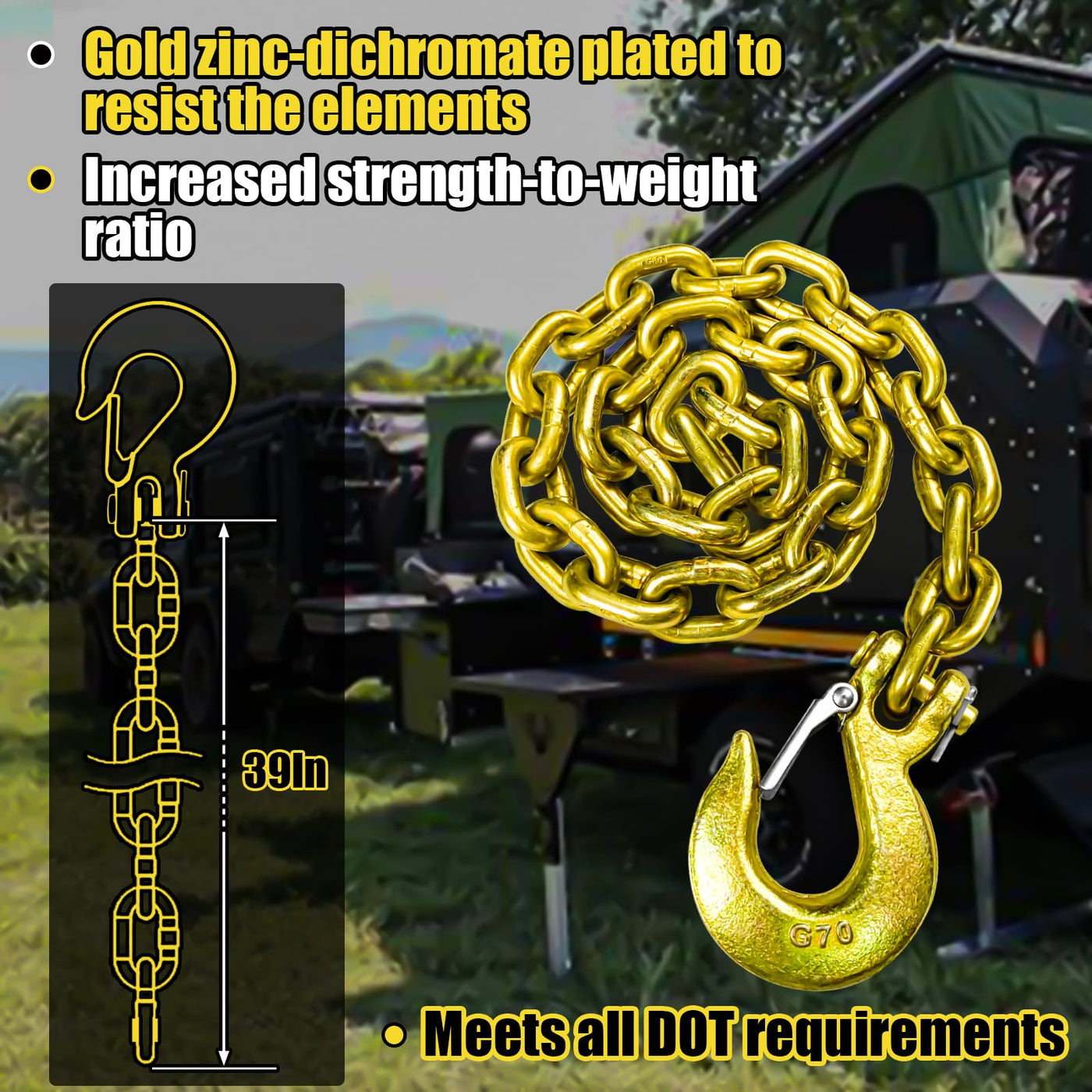 Fithoist G80 Trailer Safety Chain 39 Inch | Tow Chain With 3/8'' Clevis Snap Hook | 2-Pack Heavy Duty Chain Break Strength 25,00
