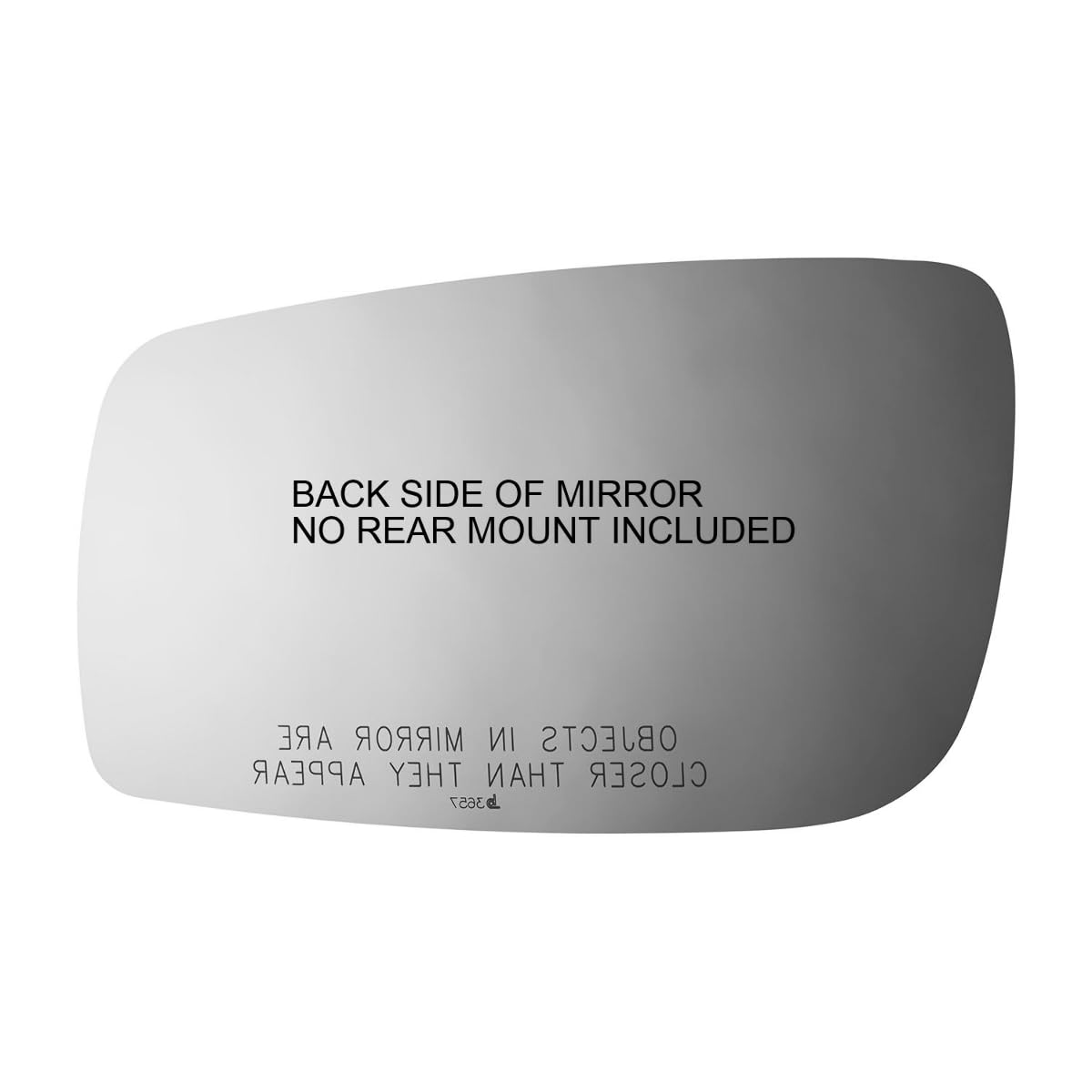 This Listing:Right Passenger Convex #BAP-3657 Pic#1 4 5/16 X 7 1/2 8-1/8' Longest DiagonalVehicle was originally equipped with heated mirrors. Use as direct fit over to retain heat function. Optional: 00-02 Heated #BAP-3657H Contact us to purchase Measures: 4 5/16h X 7 1/2w 8-1/8' LongestDiagonal 2nd Pic Option: 02-06 Use #BAP-3770 See our Store to Order Optional Heated: 02-06 #BAP-3770H Pic#2 See our Store to Order 2 Year Satisfaction Guarantee These mirrors are designed to replace existing broken glass. If you are missing the glass, it is more than likely you are missing the black plastic backing plate this mirror attaches to. Confirm that the pivoting backing bracket is attached to the motor hub. This piece must be there and working properly for the glass to attach to.