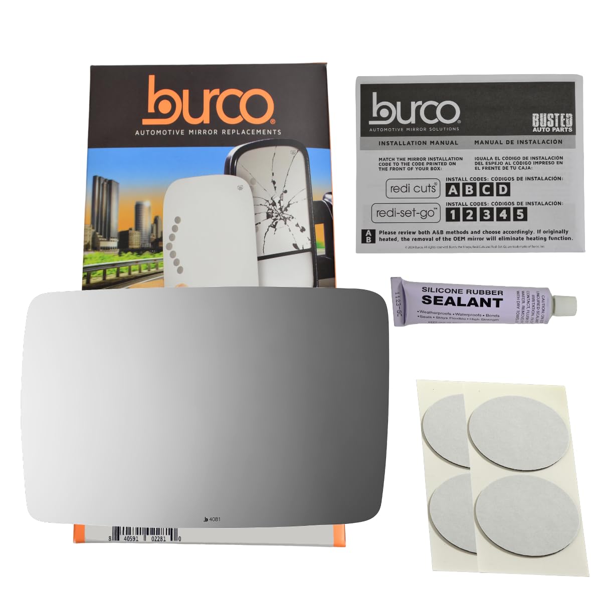 New in Box: Exact Fit Mirror Glass Lens Fitment: Left Driver (Glass Lens Only) w/o backing plateMirror Measures (9 3/16) inches diagonally (many cars have more than one option, please match the size and shape)Quick, Easy, Cost effective alternative to full assembly replacementHigh Quality - manufactured in the USA Meets or exceeds OEM specificationsadhesive and installation instructions provided