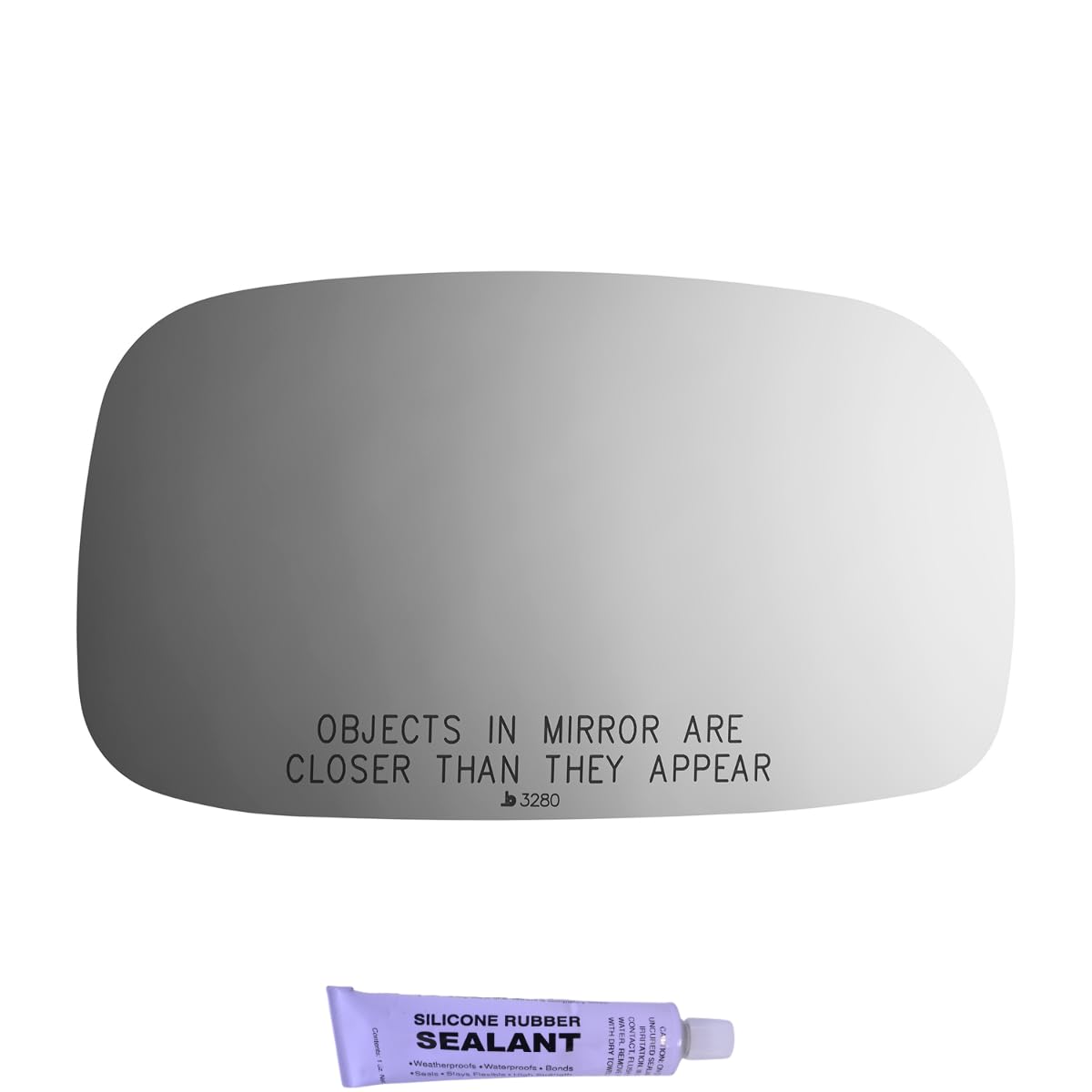 Q: What material is the mirror glass lens made from?A: This mirror glass lens is made from high-quality glass, providing durability and clarity while meeting or exceeding OEM specifications.