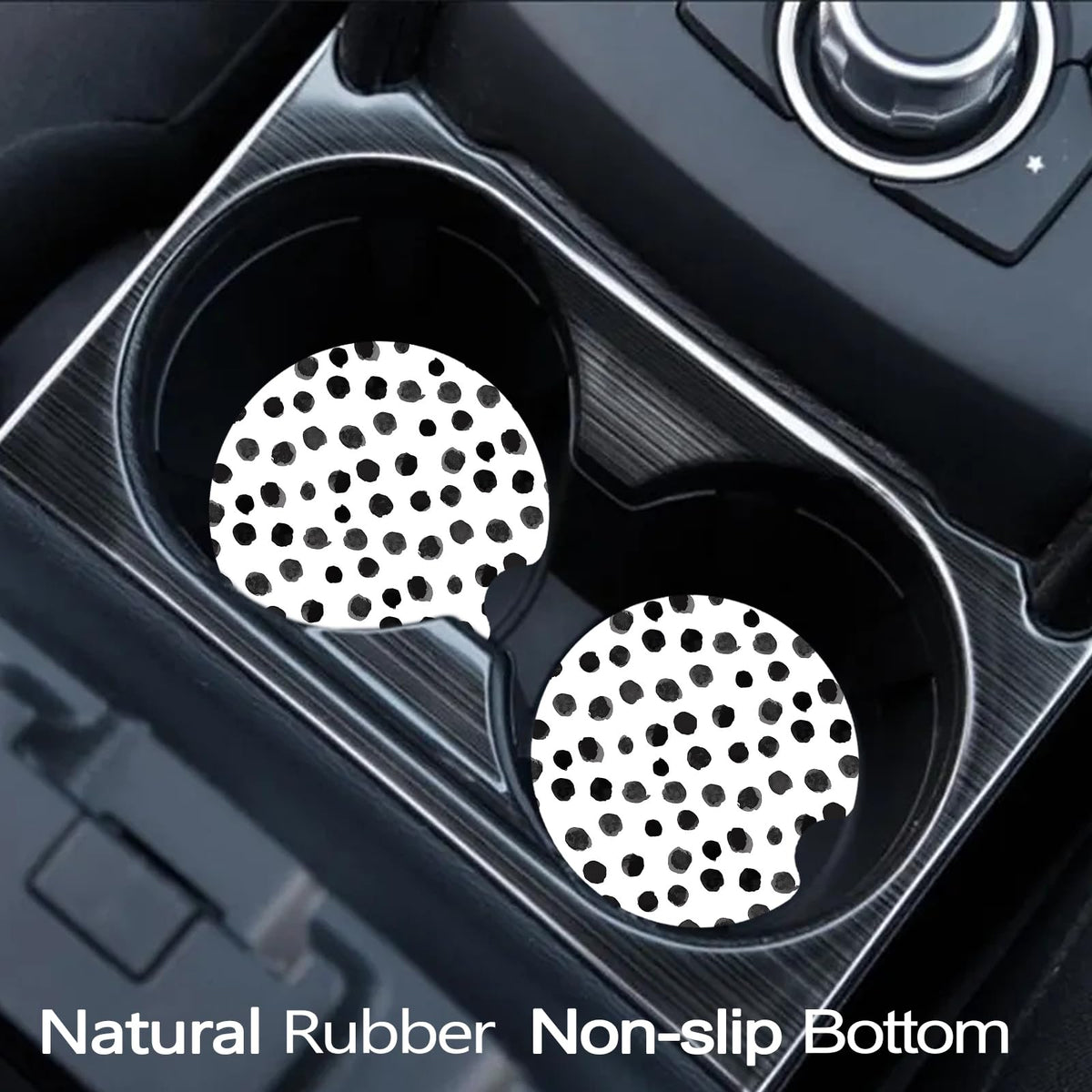 FJyuanqi 2 pack cup holder coasters for carVery practical car cup coasters, the universal size fits most models, and the small notch design makes it easy for you to place and remove coasters.Soft rubber material is not easy to deform, easy to clean, keep your car clean.A variety of patterns to create personalized car interior decoration.Product size: Diameter 2.75 inches, thickness 0.2 inches.