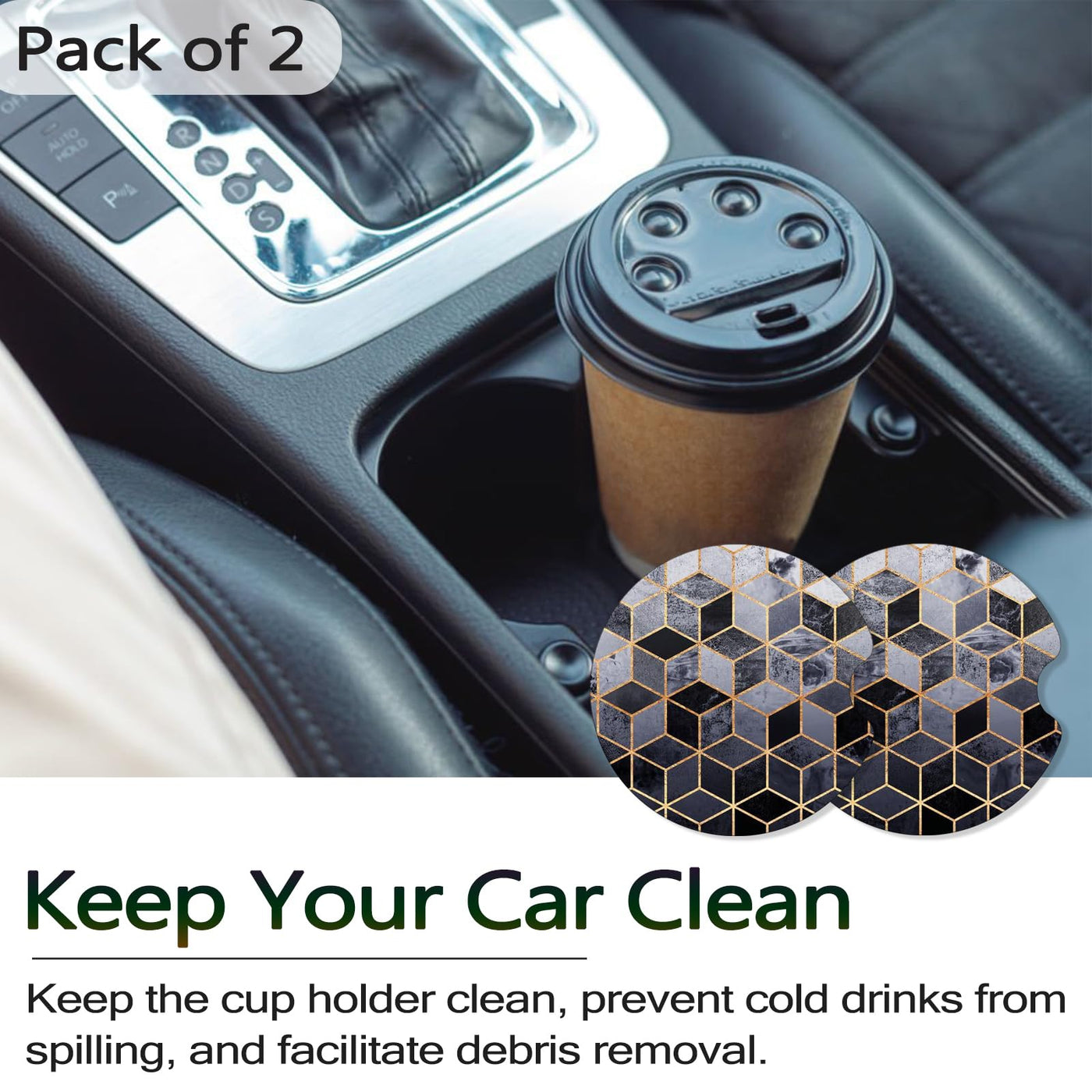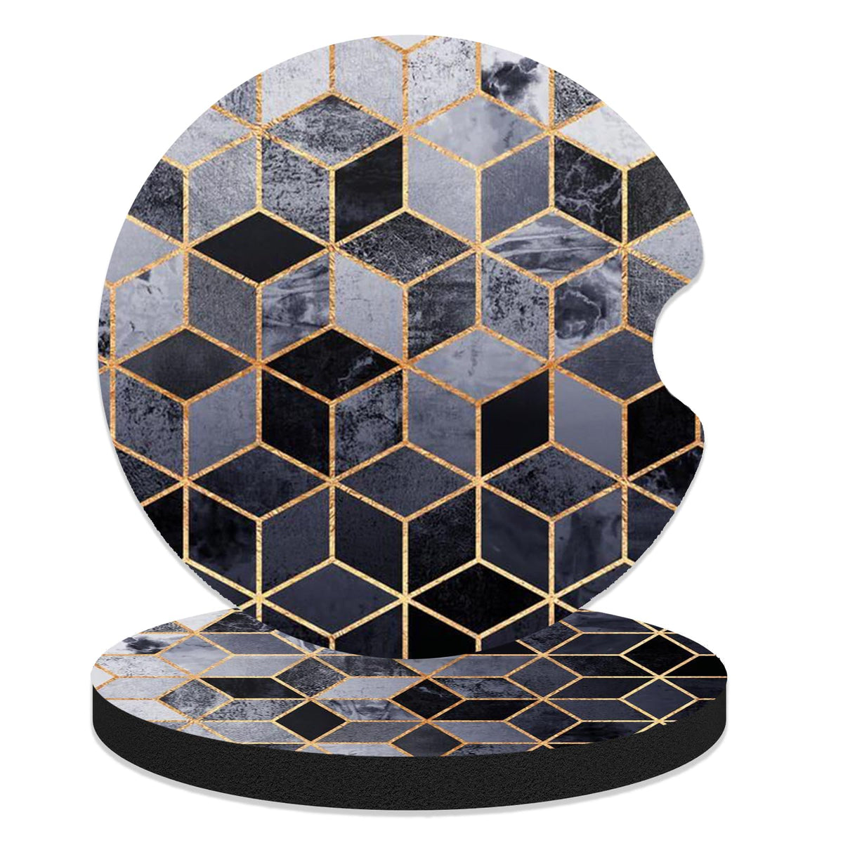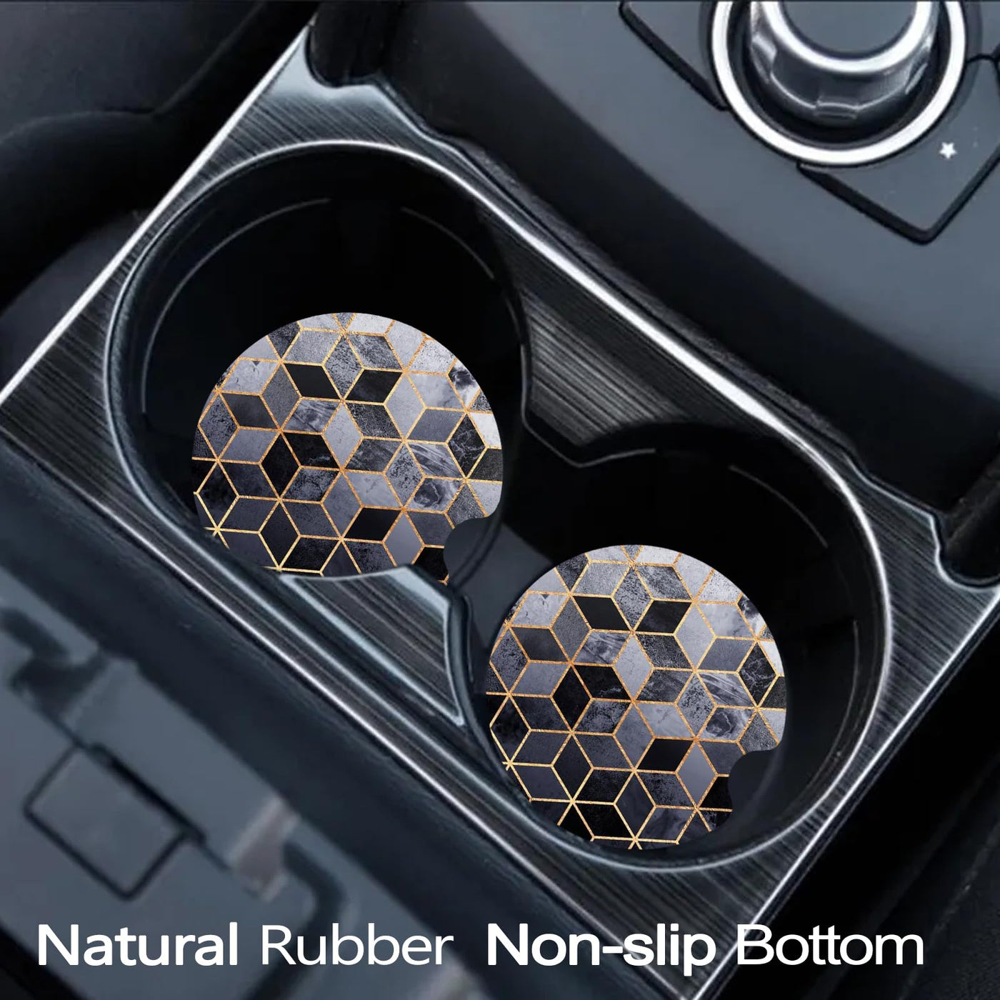 FJyuanqi Car Coasters for Cup Holders, 2 Pack Anti Slip Universal Rubber Cup Coaster - Geometric Black Gold Marble
