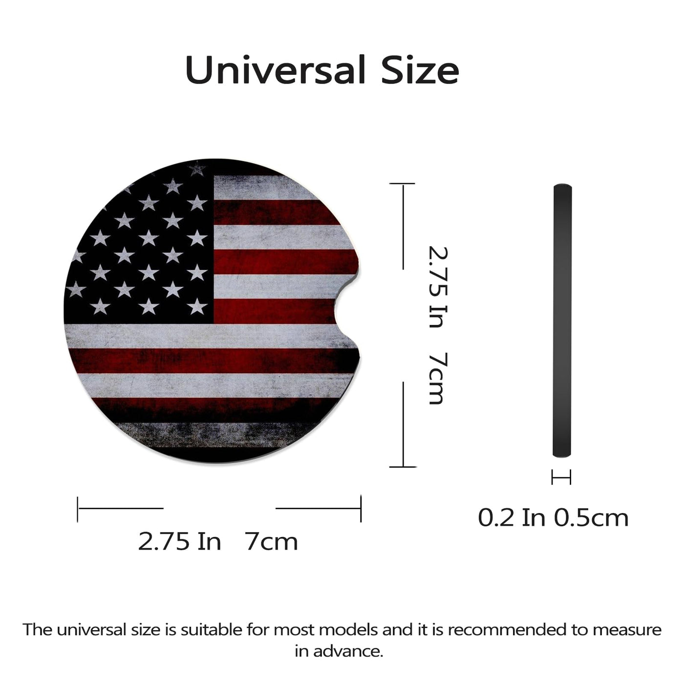 FJyuanqi 2 pack cup holder coasters for carVery practical car cup coasters, the universal size fits most models, and the small notch design makes it easy for you to place and remove coasters.Soft rubber material is not easy to deform, easy to clean, keep your car clean.A variety of patterns to create personalized car interior decoration.Product size: Diameter 2.75 inches, thickness 0.2 inches.