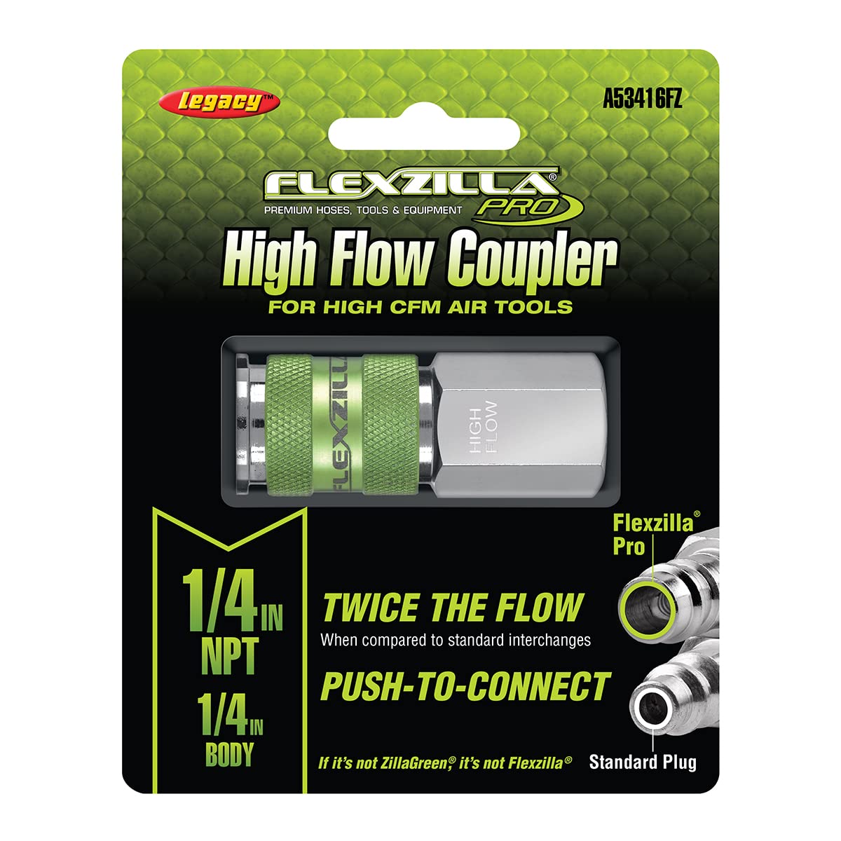 Flexzilla Pro High Flow Couplers And Plugs Allow Twice The Flow To Your Air Tools Compared To Standard Interchanges. Connect Flexzilla High Flow ?Ttings From Your Tool All The Way To The Compressor. This Ensures The Best Performance Your Air System Can Provide. For Maximum Efficiency, Use Flexzilla Pro High Flow. Dont Starve Your Air Tool!