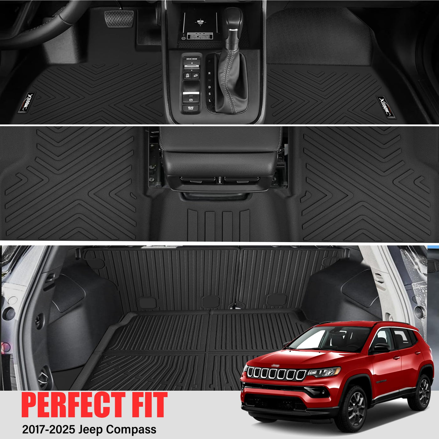 Floor Mats &Trunk Mat For 2017-2025 Jeep Compass With Backrest Mat All Weather Tpe Rubber Cargo Liner Back Seat Cover 3Rd Row Fo