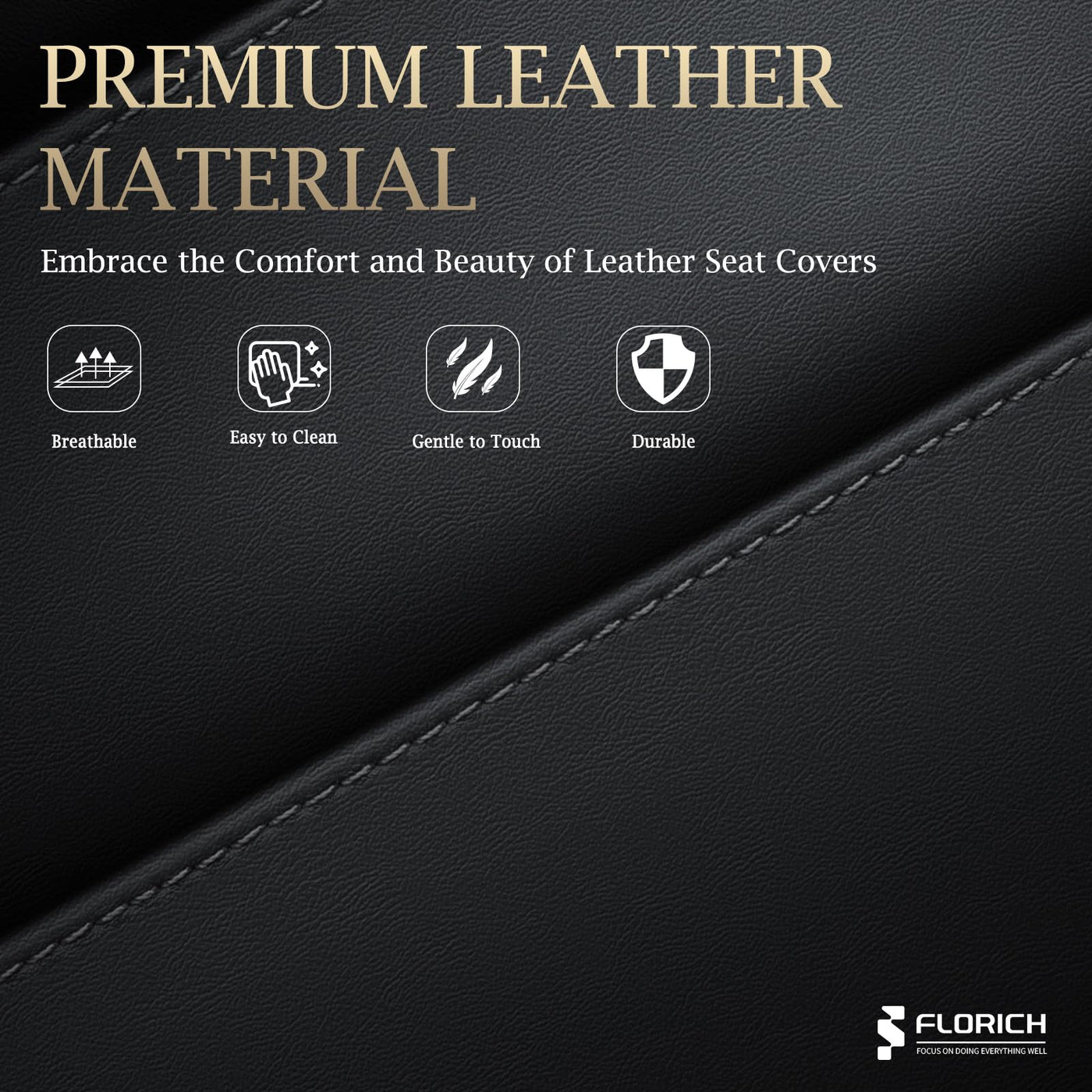 ?UNIVERSAL FIT? The florich leather seat covers are universal manufactured to meet most specification of most vehicles. They are tailored made to fit more than 99% vehicles. Just cover the seat but not inhinder the original functions. Every auto feature is retained, like airbags, seatbelts and even massage. | ?SUPERIOR NAPPA LEATHER?These charming car seat covers are crafted of porous Nappa leather and durable leatherette, the seat covers are smooth, breathable and gentle to touch. Filled with high-resilient density foam padding, they can boost the comfort level in the cabin of any vehicle. | ?STYLISH DESIGN?Featuring a sleek and modern design, this rear leather seat cover enhances the overall aesthetic of your vehicle's interior. Its elegant stitching and refined texture seamlessly blend with any car style, adding a touch of luxury and sophistication. Whether you prefer a classic or contemporary look, this seat cover will complement your vehicle's interior beautifully. | ?SAFE & SECURE?Reserved airbag exit to ensure the airbag can function in case of emergency. Reserved seat belt exit, will not affect the use of child safety seats, while compatible with ventilated and winter seat covers. | ?EASY TO INSTALL & CLEAN? Seat cushion covers are designed to install easily in 10-20mins after reading the installation instructions and videos. Before installing, please check the products and select the proper installation method. It is very convenient to use a wet towel to wipe the car seat cover in a renew condition.