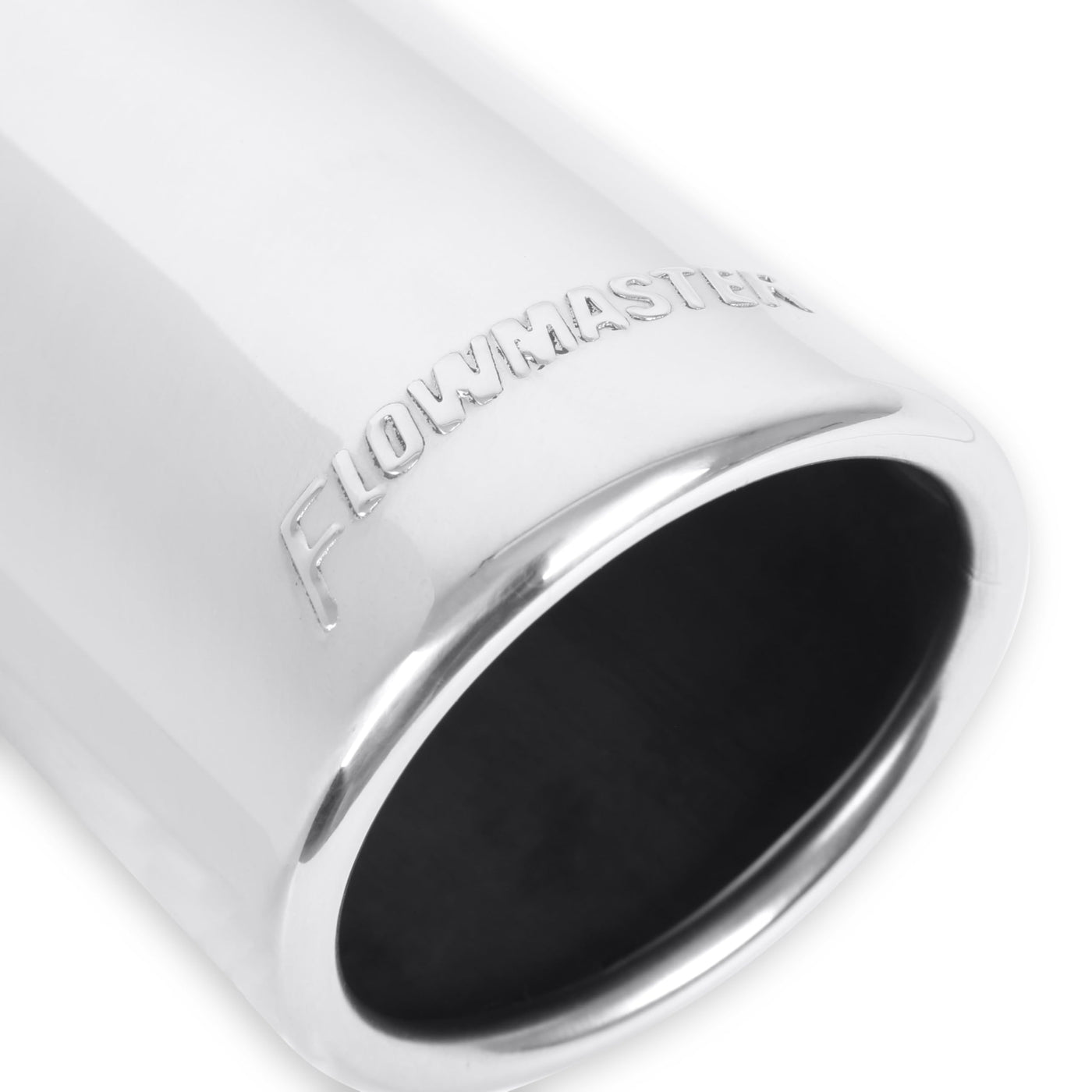 Q: How do I care for my Flowmaster Exhaust Tip to maintain its appearance?A: To maintain the polished finish of the Flowmaster Exhaust Tip, regularly clean it with a mild automotive soap and a soft cloth. Avoid abrasive cleaners that could scratch the surface.